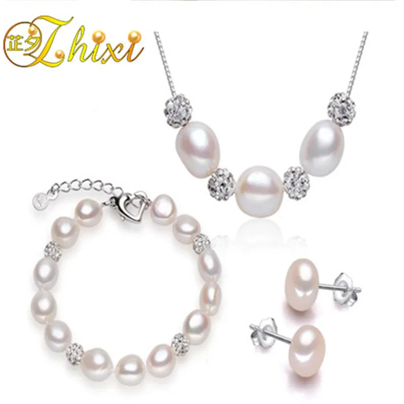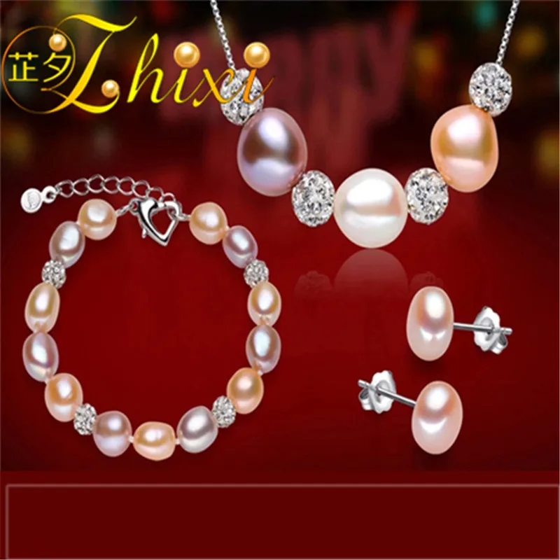 Pearl Jewelry Set Natural Pearl Necklace Pendant Bracelet Earrings Fine Jewelry Trendy Gift For Women[set03]