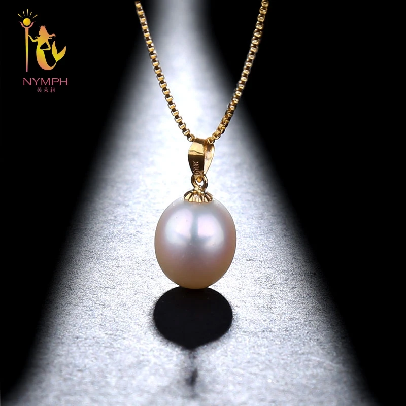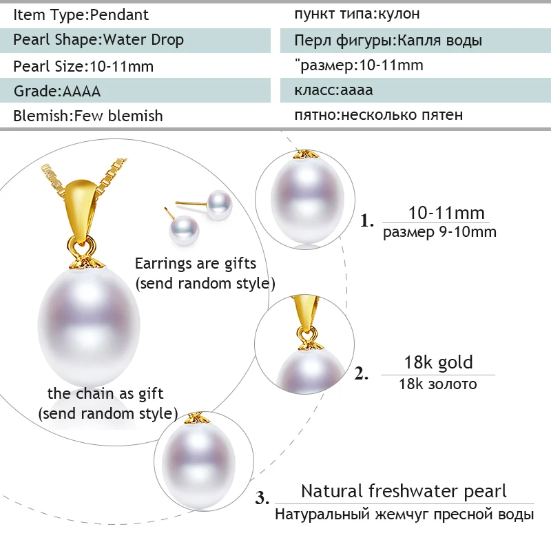18K Yellow Gold Necklace Pendant Natural White 10-11mm Drop Pearl Wedding Party Gift Girl Women [T251]