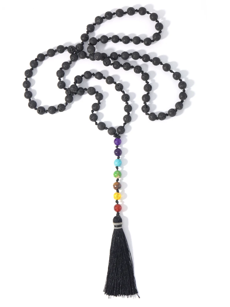 OAIITE 7 Chakra Lava Rock Mala Necklace 108 Bead Natural Stone Yoga Meditation Essential Oil Diffuser Necklace for Women