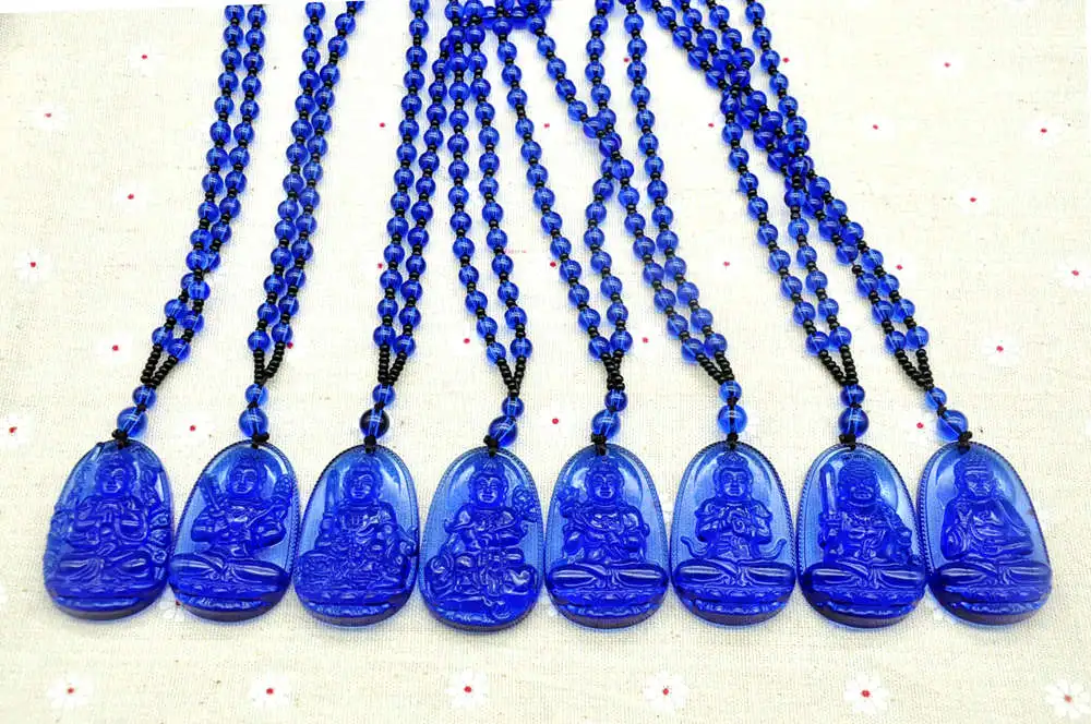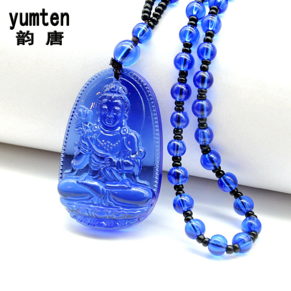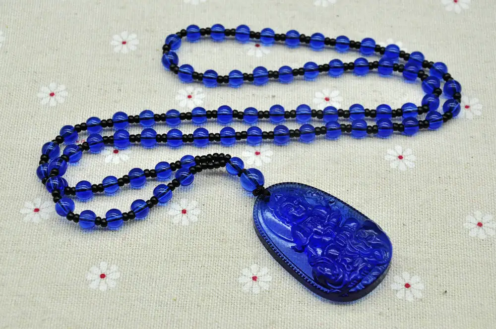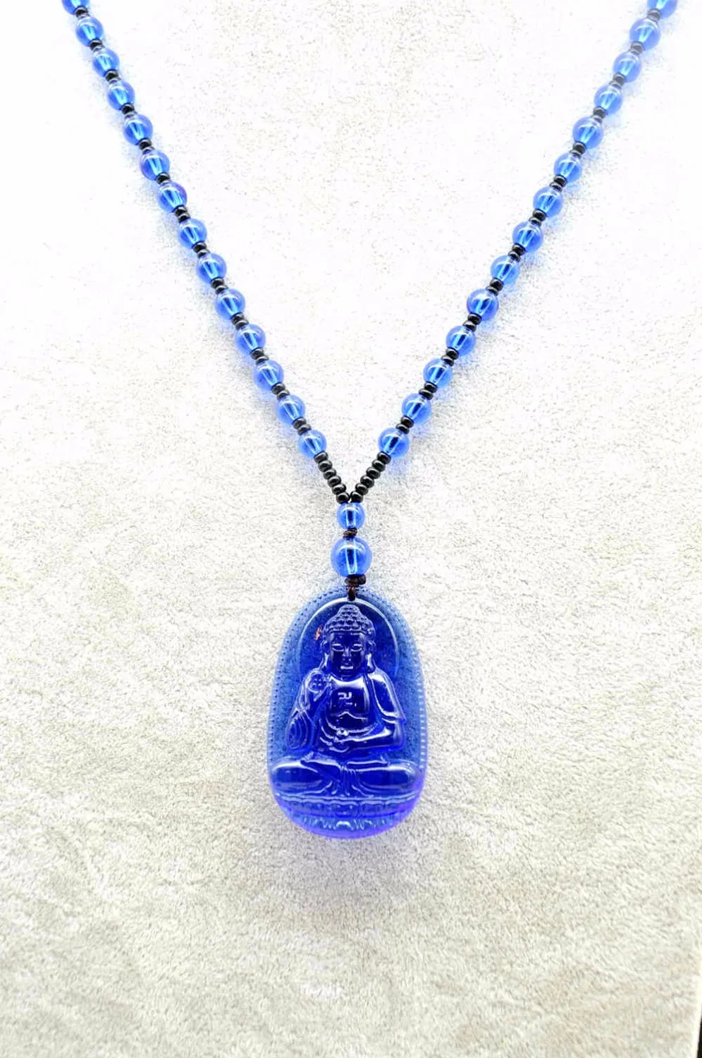Obsidian Blau Chalet Buddha Jade Fine Jewelry Necklace Women Blue Chalcedony Simple Necklace Overwatch Pendants Link Chain Beads