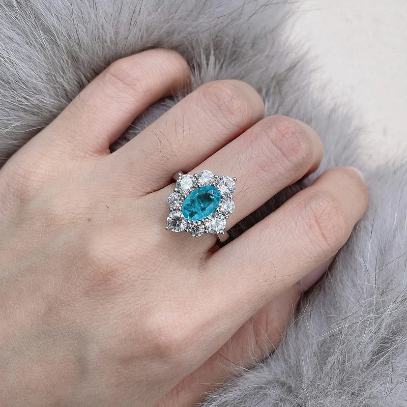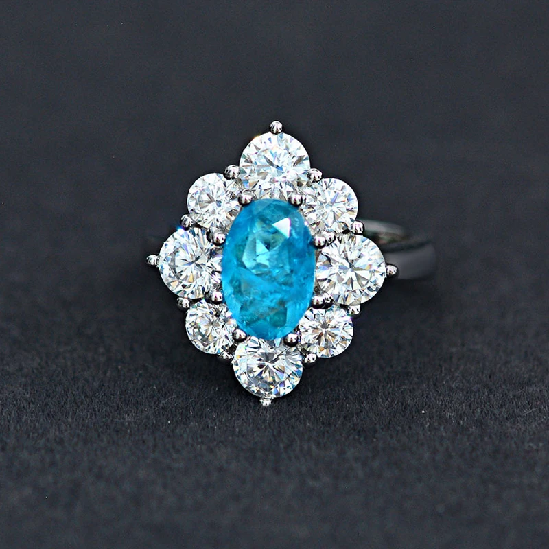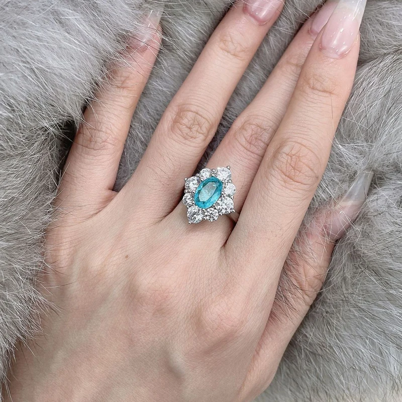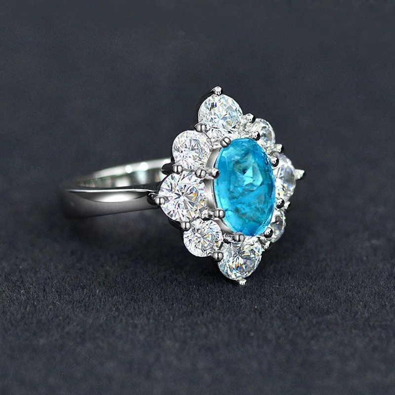 OEVAS 100% 925 Sterling Silver Rings For Women Sparkling High Carbon Diamond 6*9MM Oval Paraiba Tourmaline Gemstone Fine Jewelry