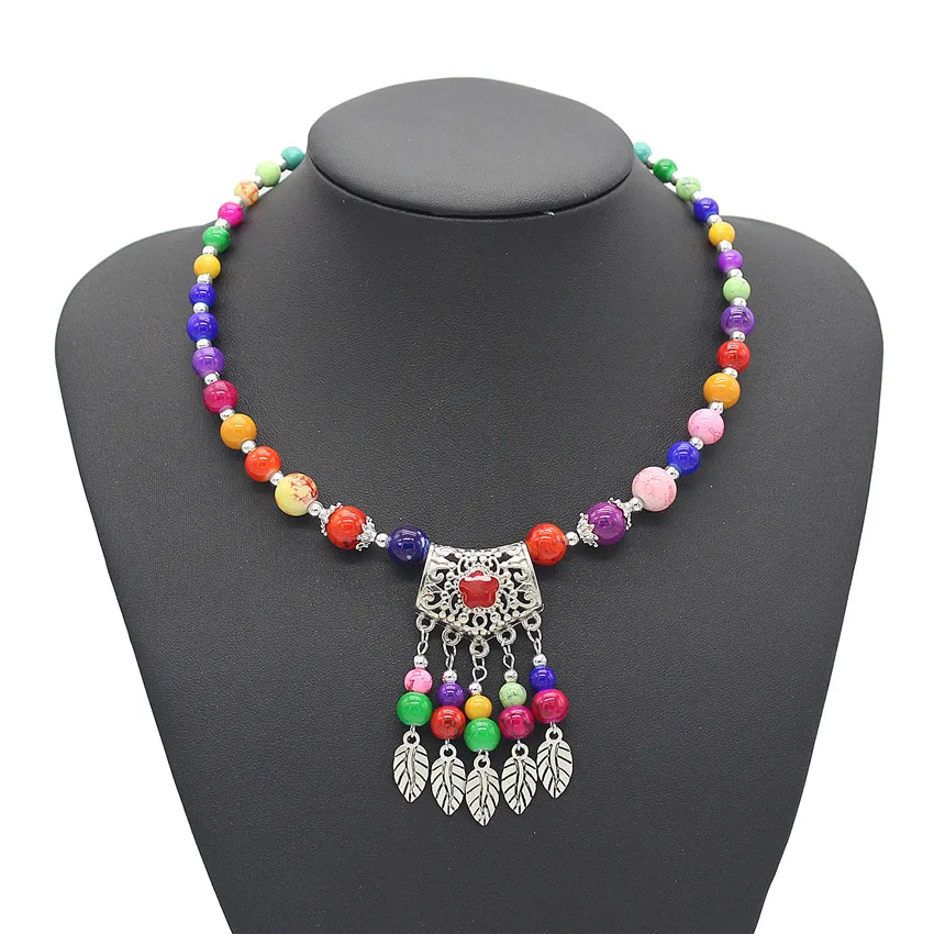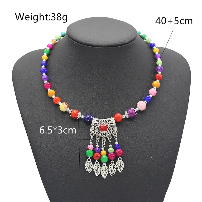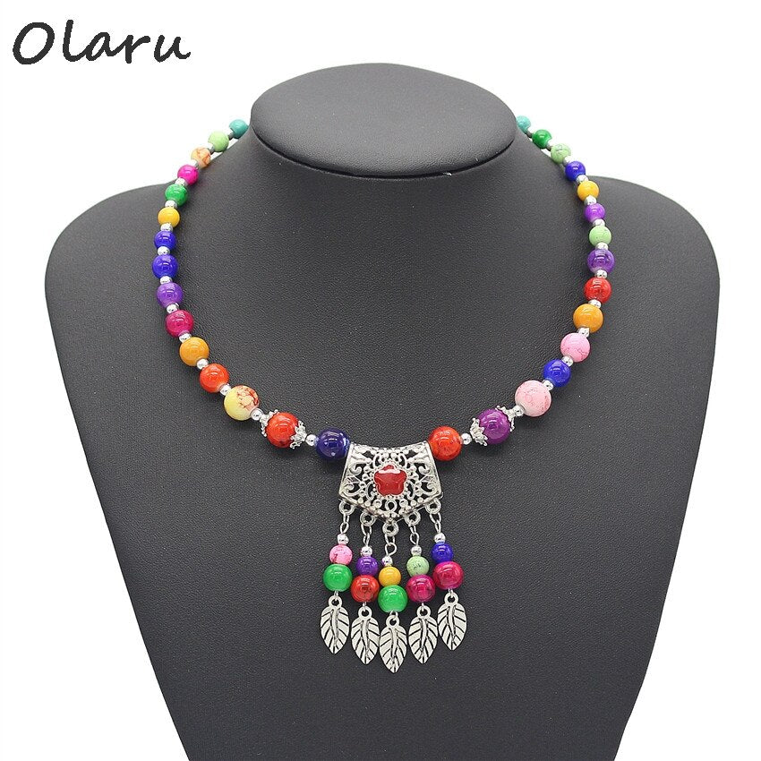 Olaru Jewelry Tibet Trendy Bohemia Beads Big Flower Leaf Choker Necklaces Woman Nation Collar Statement Necklace Accessories