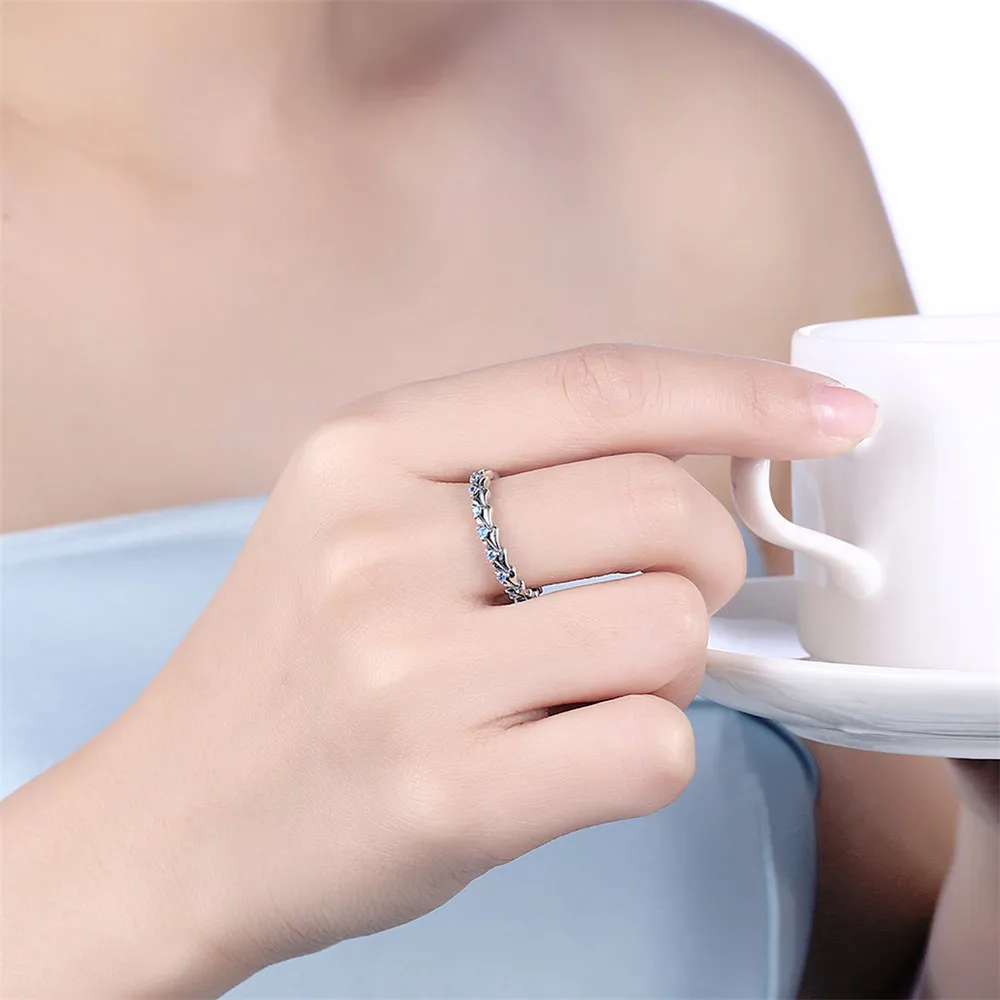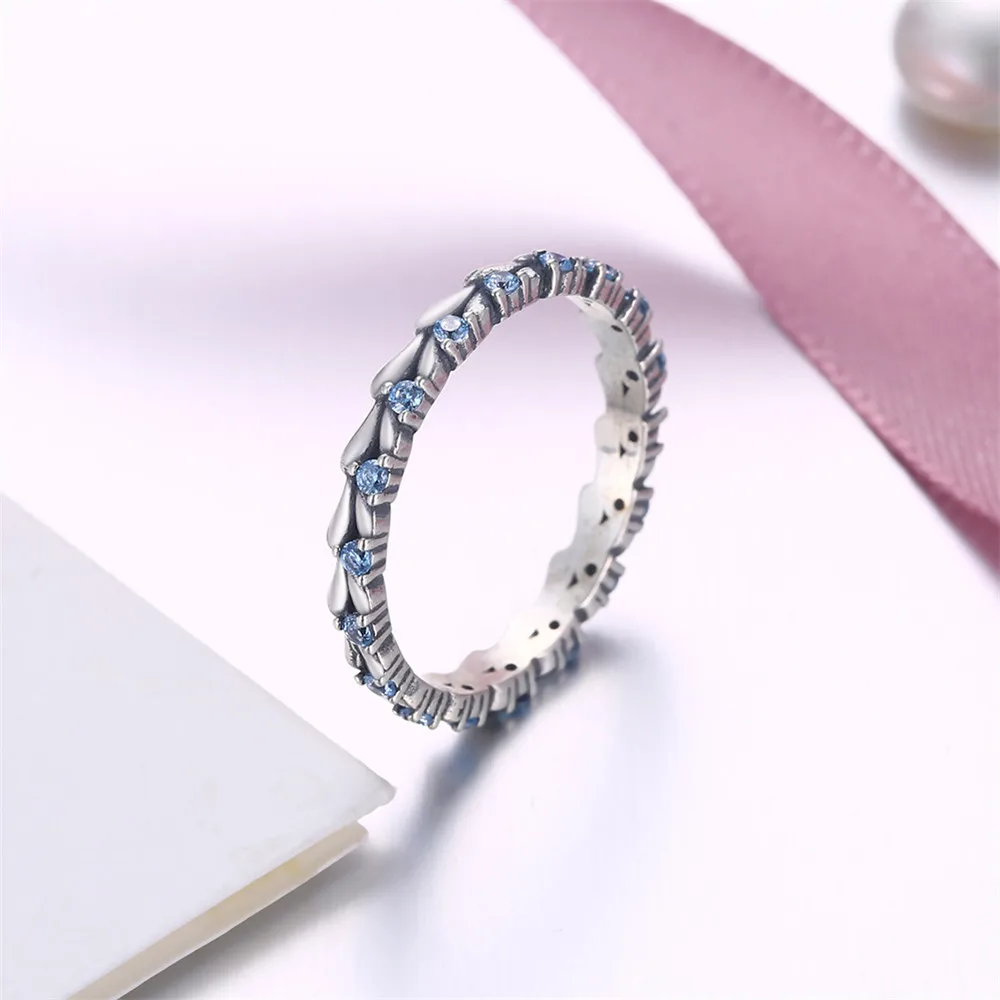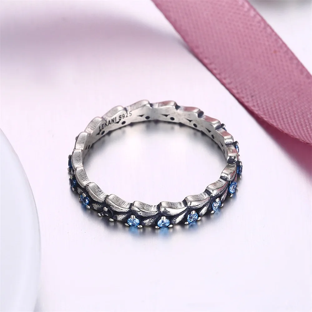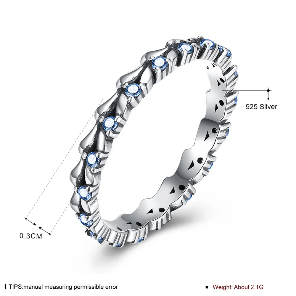 100% Real 925 Sterling Silver Ring for Women Blue Zircon Stone Ladies Vintage Ring Fine Accessories Jewelry Gift YMR046