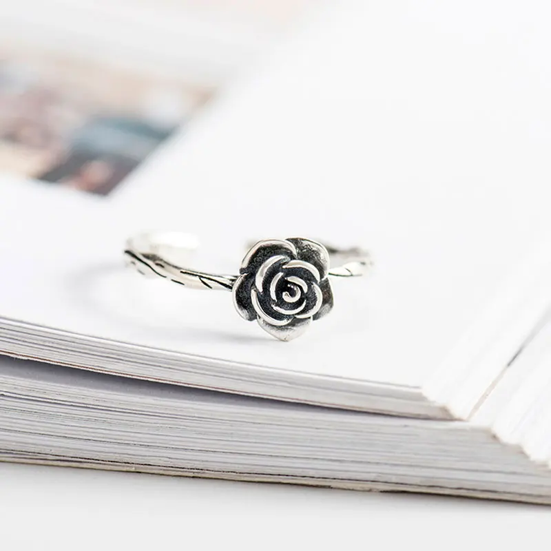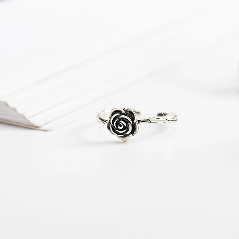 Genuine 925 Sterling Silver Rings Vintage Rose Flower New Arrival Open Adjustable Ring for Women Fine Jewelry Gift YMR227