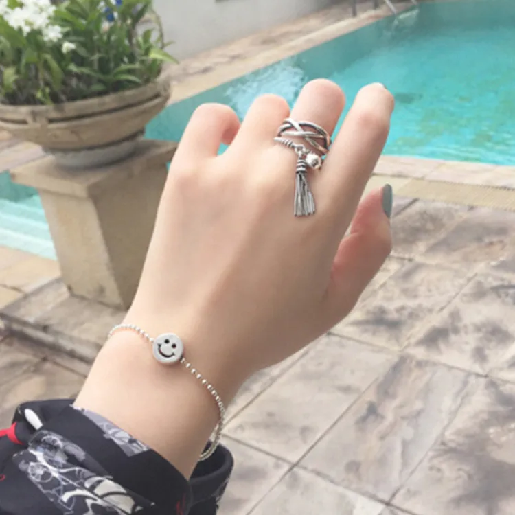 Real 925 Sterling Silver Open Ring For Women With Long Tassel Do The Old Vintage Rings Bijoux Femme Fine Jewelry YMR064