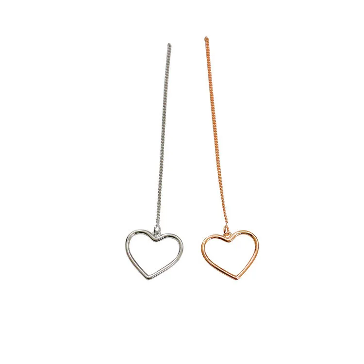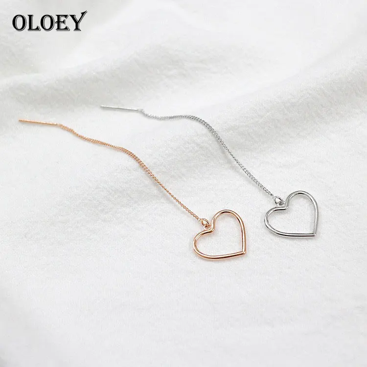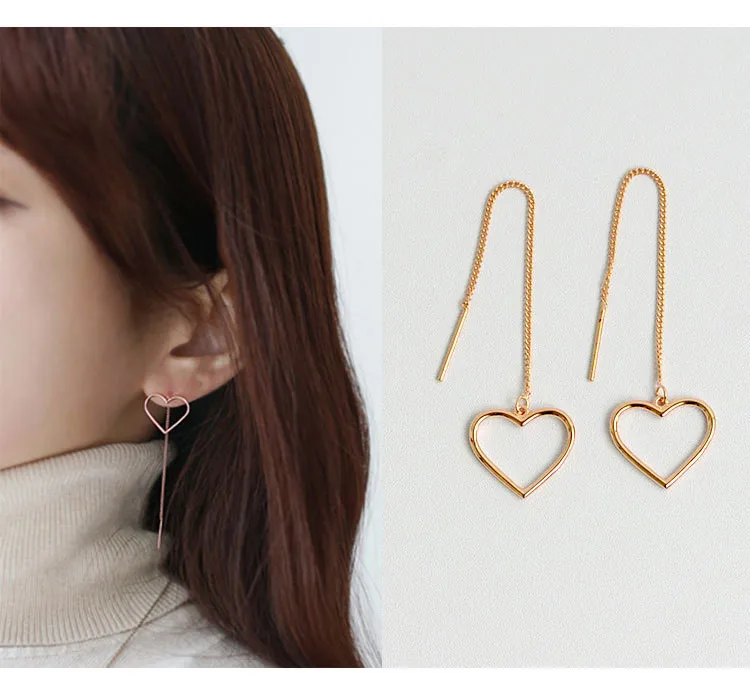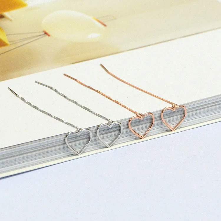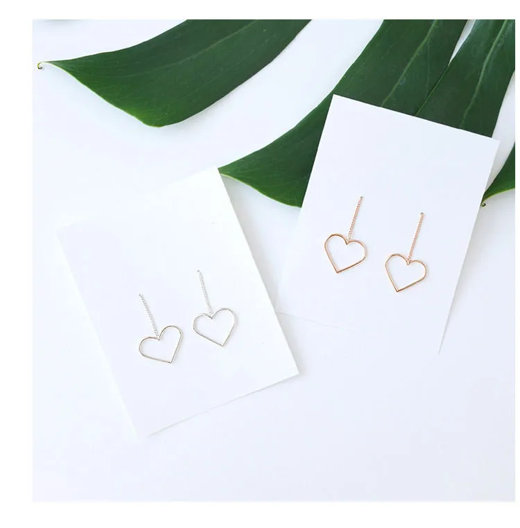 Simple Long Dangle Drop Earrings for Women Real 925 Sterling Silver Chic Hollow Heart Earring Fine Jewelry Gift YME089