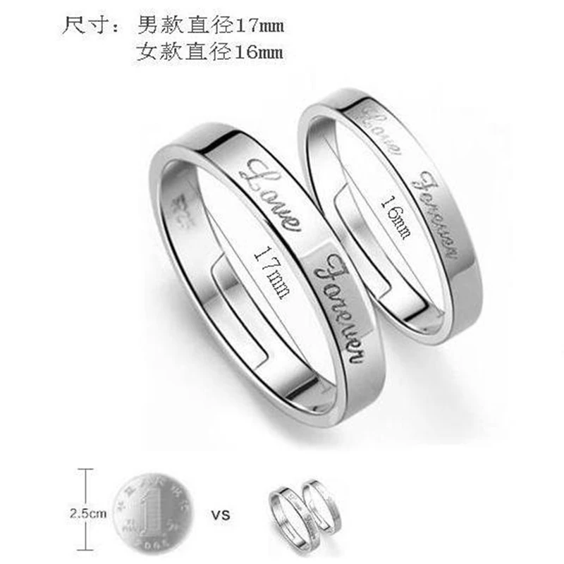 Wholesale Fashion English Forever Love Lovers Couple 925 Sterling Silver open adjust female for Woman Man Ring Gift RG30
