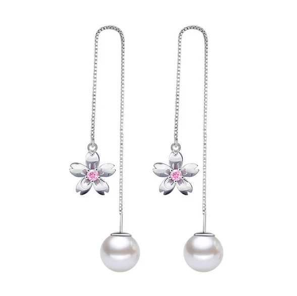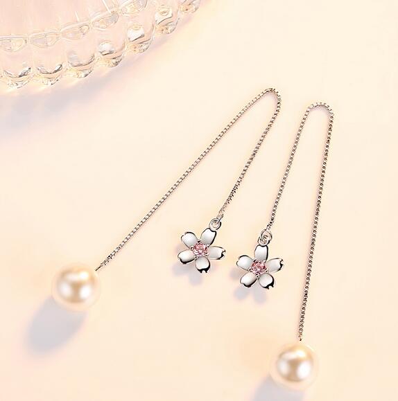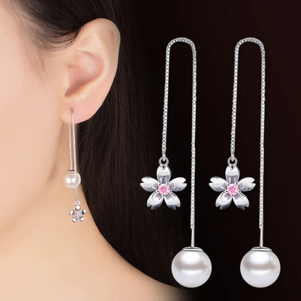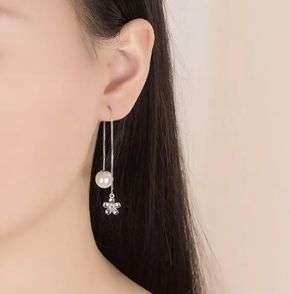 Wholesale Fashion simple lovely cherry 925 Sterling Silver Tassel pendant drop Long Ear Line Earrings For woman YS163