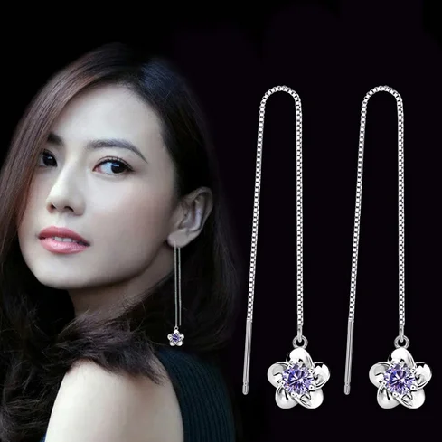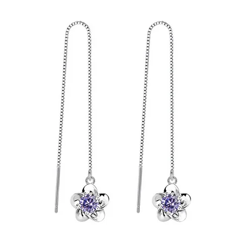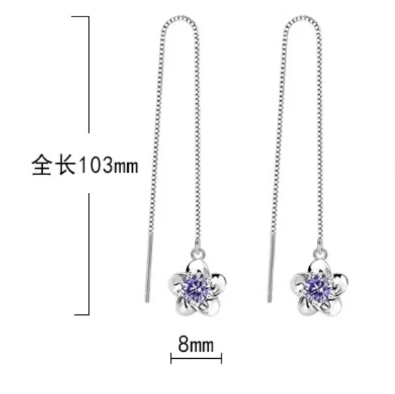 Wholesale Fashion Simple plum flower 925 Sterling Silver Tassel pendant drop Long Ear Line Earrings For Women YS145