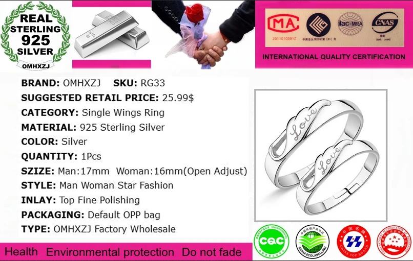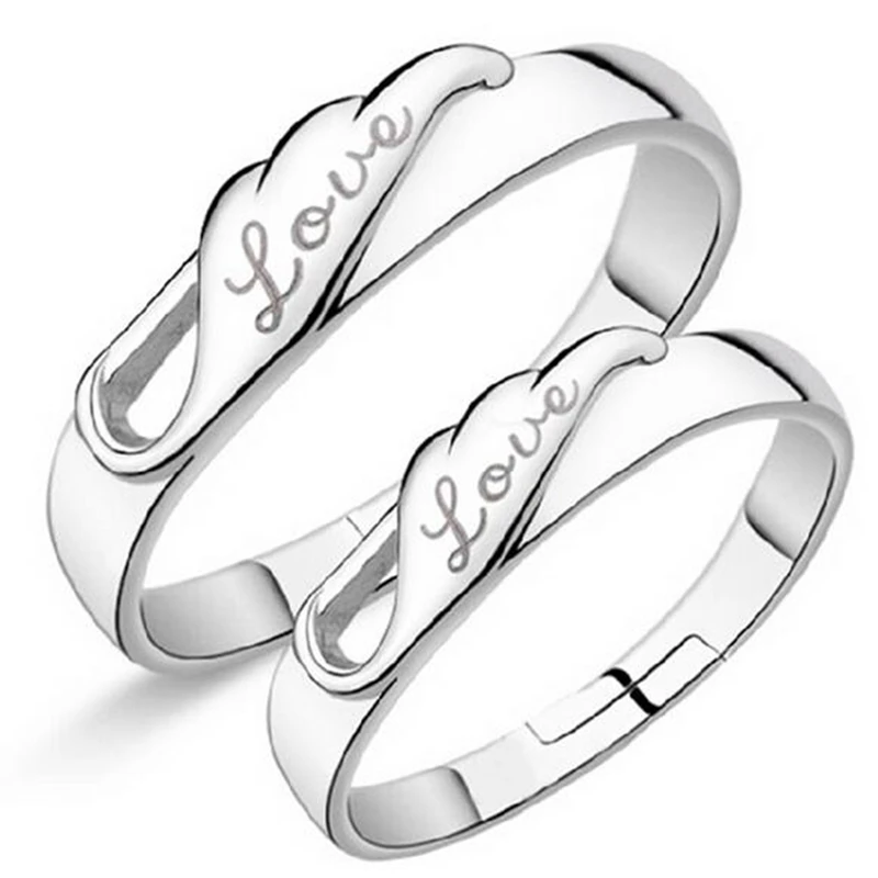 Wholesale Fashion Simple Single Wings Lovers Couple 925 Sterling Silver open adjust female for Woman Man Ring Gift RG33