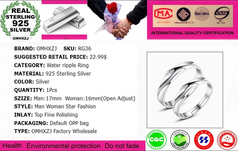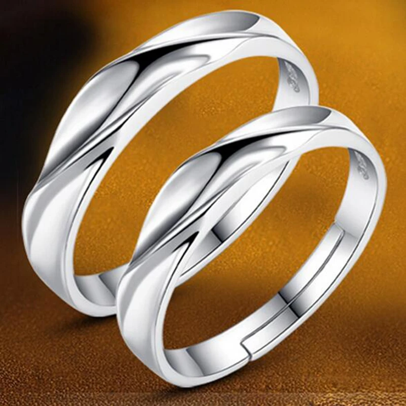 Wholesale Fashion star Simple Water ripple Lovers Couple 925 Sterling Silver open adjust female for Woman Ring Gift RG36