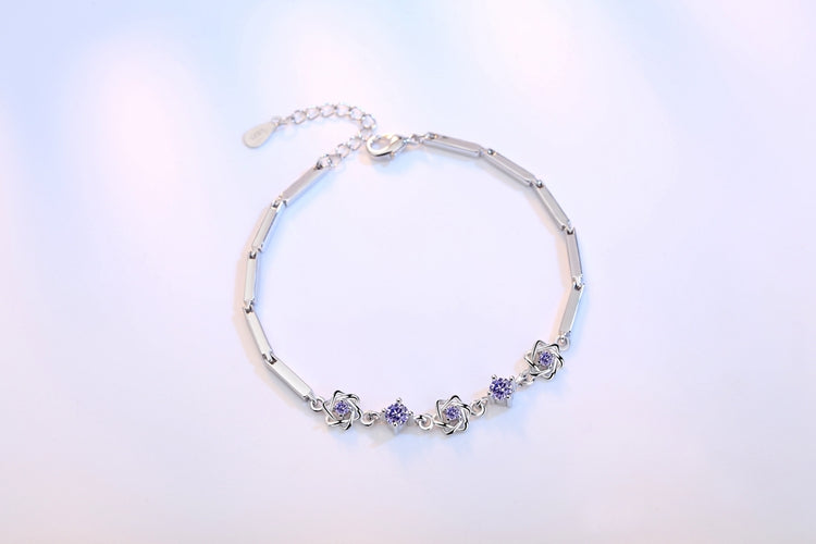 Wholesale Lovely Fashion Woman Couple Party Gift Hexagonal Star White Purple 925 Sterling Silver Bracelet Bangle SZ95