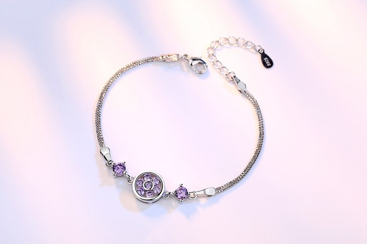 Wholesale Round Fashion Sweet Woman Girl Wedding Gift Eternal Love White Purple Zircon 925 Sterling Silver Bracelet SZ108