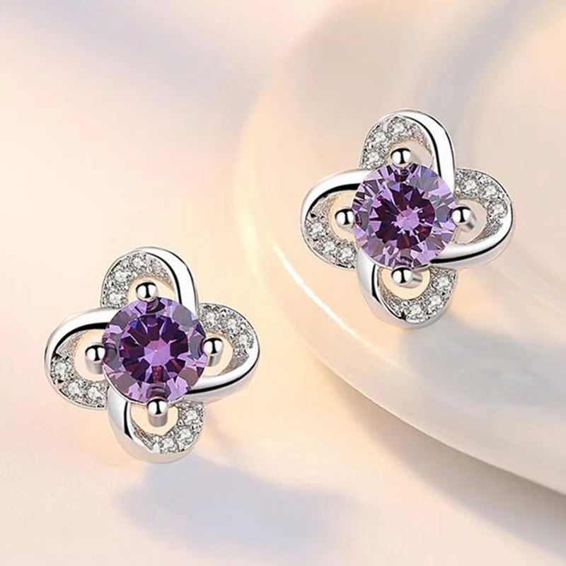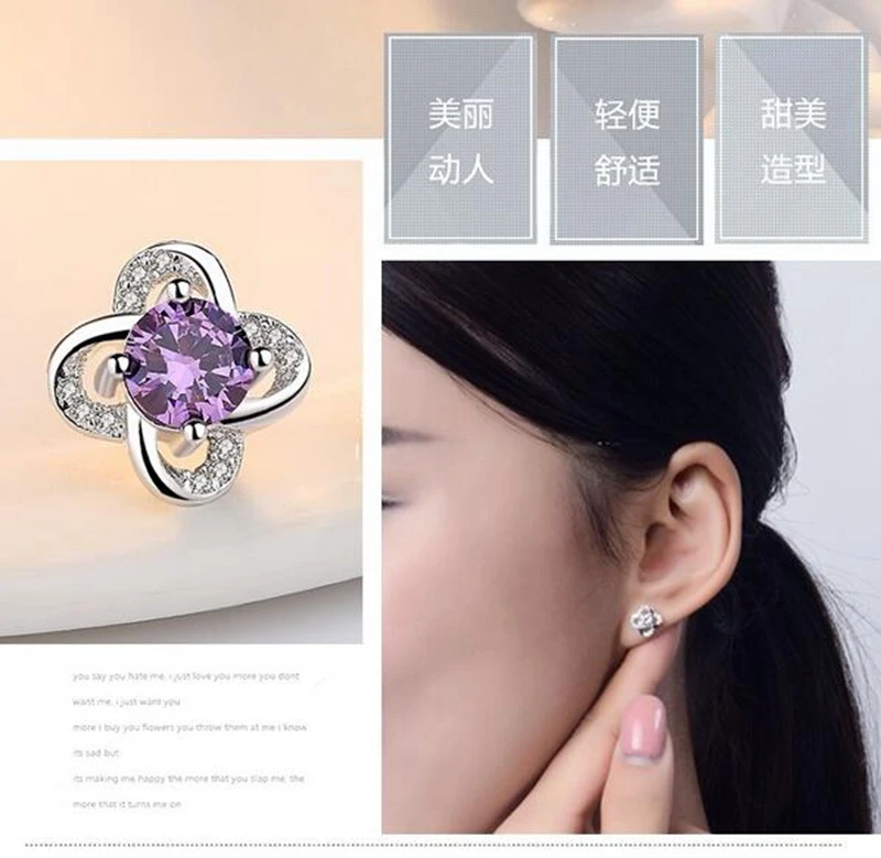 Wholesale Sweet Fashion Star Woman Girl Wedding Gift White Purple Eternal Flowers 925 Sterling Silver Stud Earrings YS367