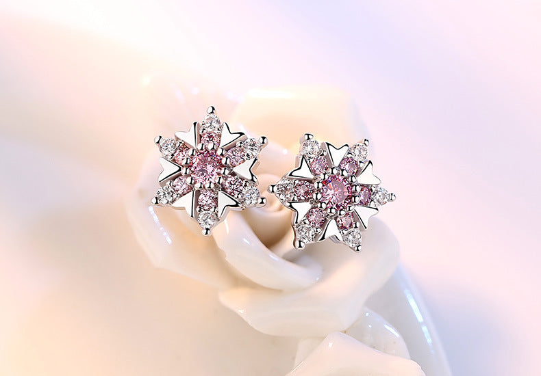 Wholesale Sweet Fashion Woman Girl Wedding Gift White Pink Fine Snowflake Zircon 925 Sterling Silver Stud Earrings YS361