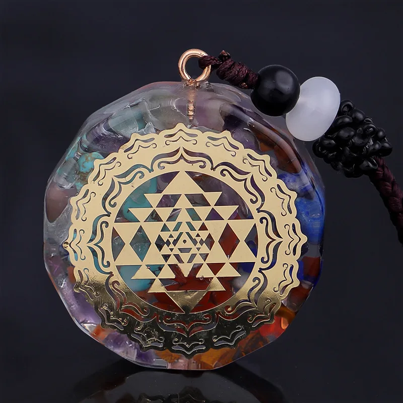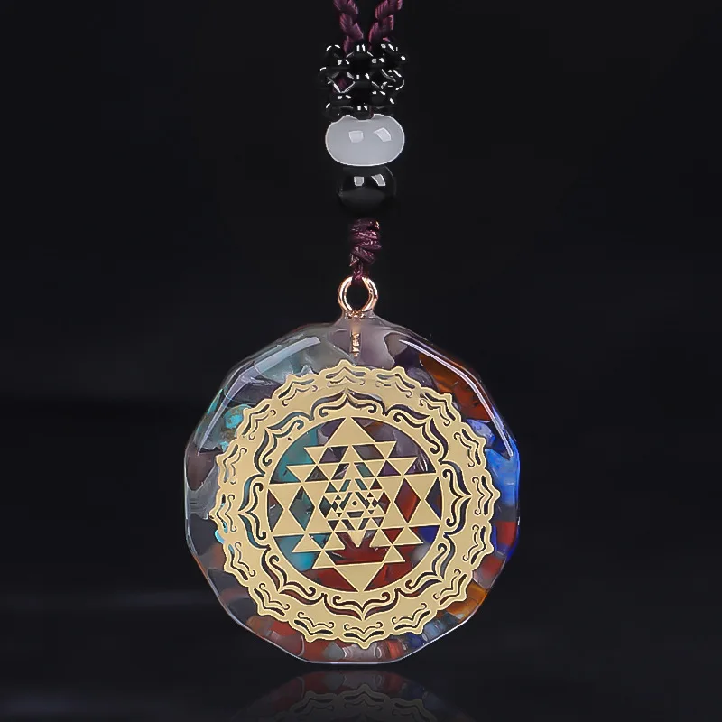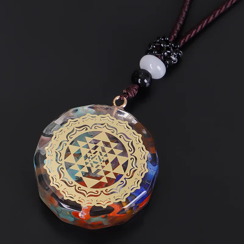 Orgonite Pendant Sri Yantra Necklace Natural Stone Sacred Geometry Chakra Energy Necklace Meditation Women Necklace Men Jewelry