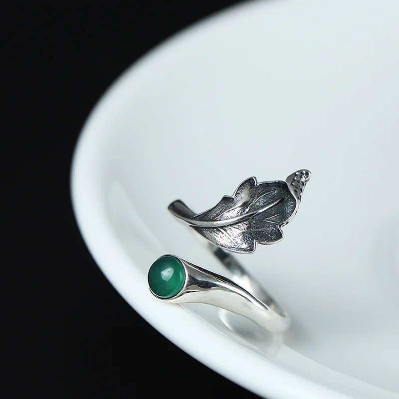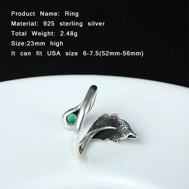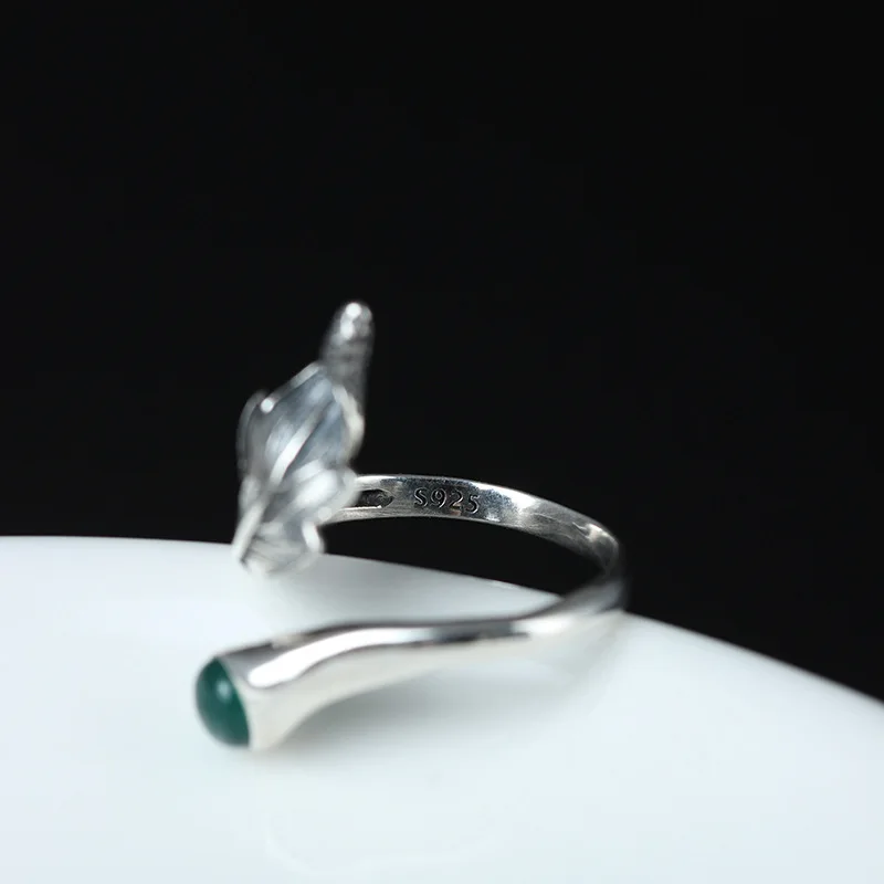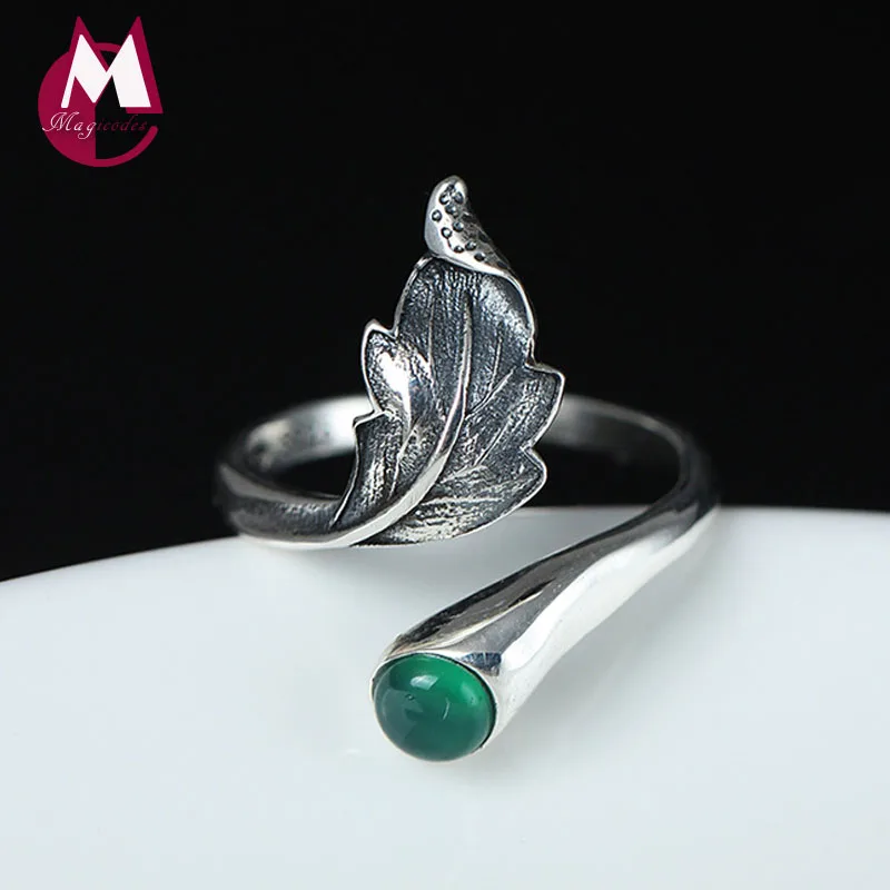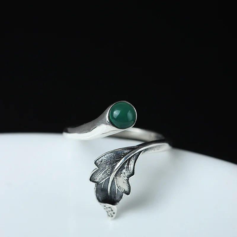 Original Design 925 Sterling Silver Rings For Women Natural Green Jade Chalcedony Leaf Ring Big Jewelry Mother's Gift YR71