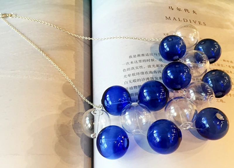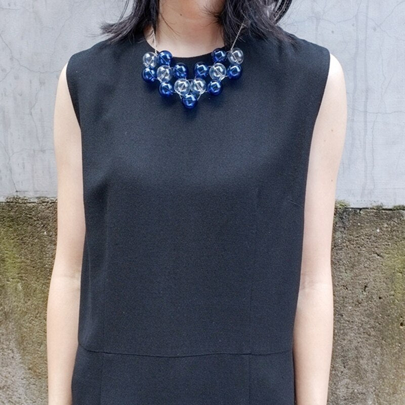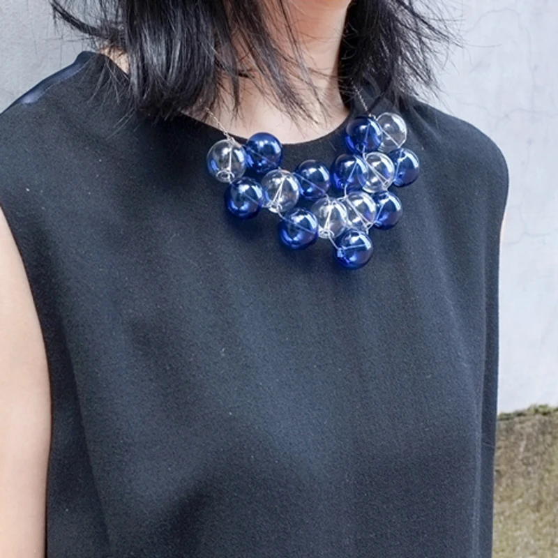 Original Design Navy Blue Bubbles Choker Necklace For Women 2019 Party Chic Hand Blown Glass Ball Charming Short Necklace Femme