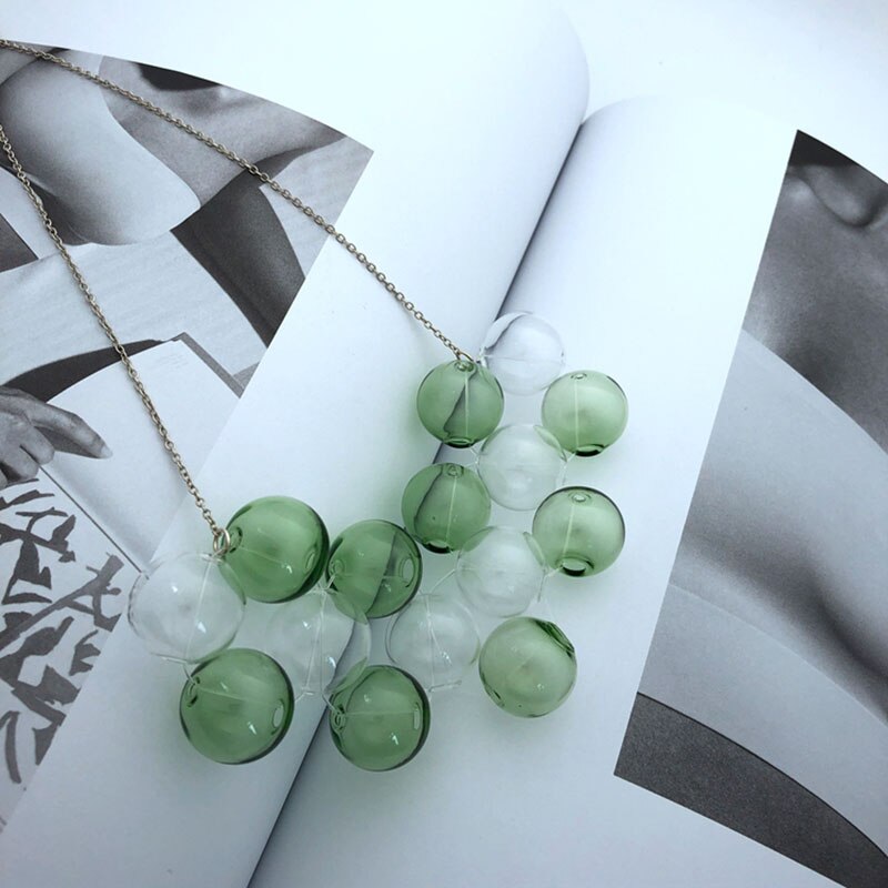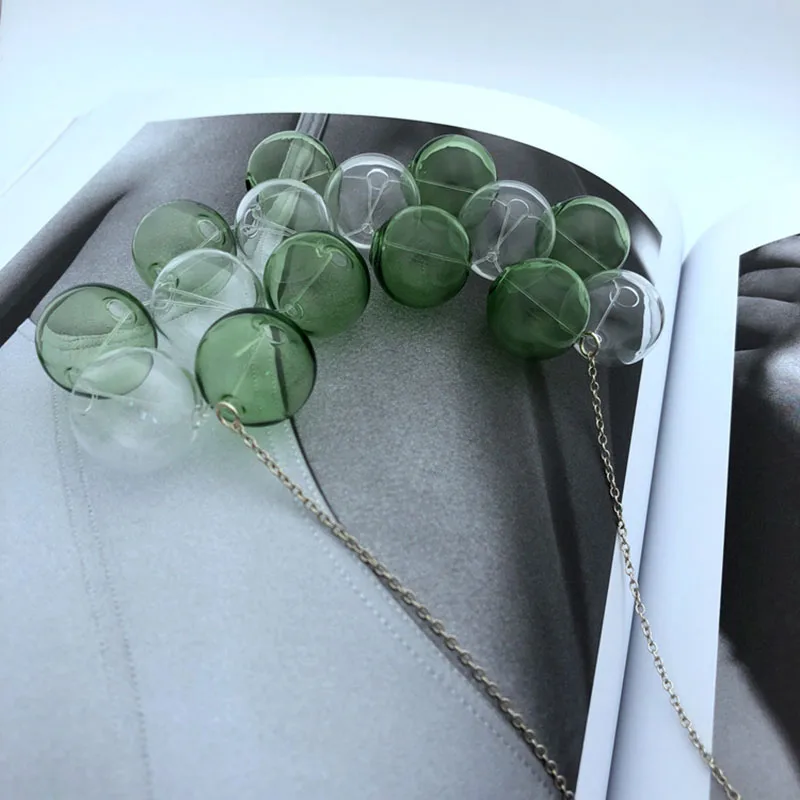 Original Handmade Blown Green Bubbles Choker Necklace For Women 2021 Unique Chic Bubbles Short Chain Necklace Femme Bjioux