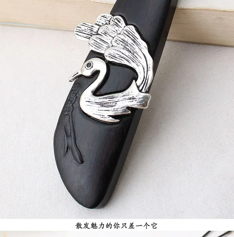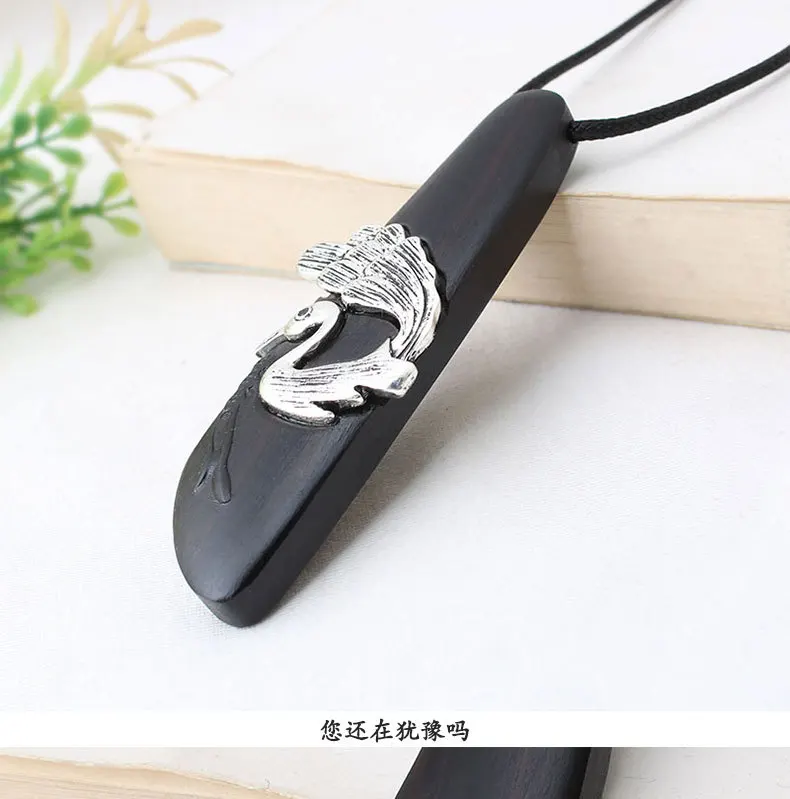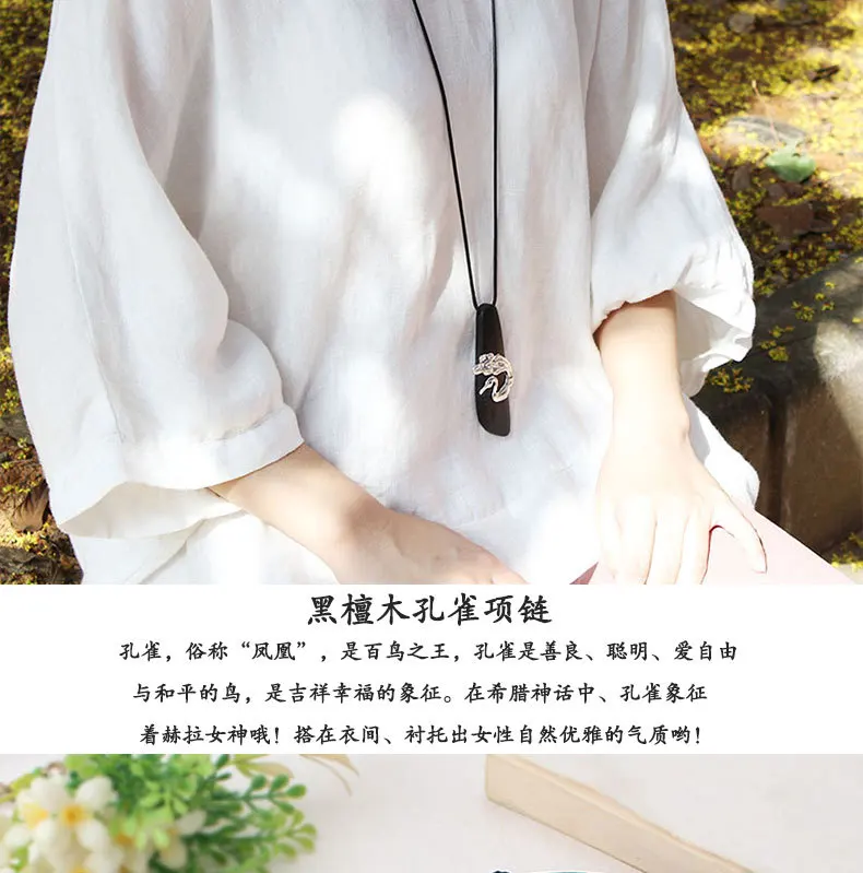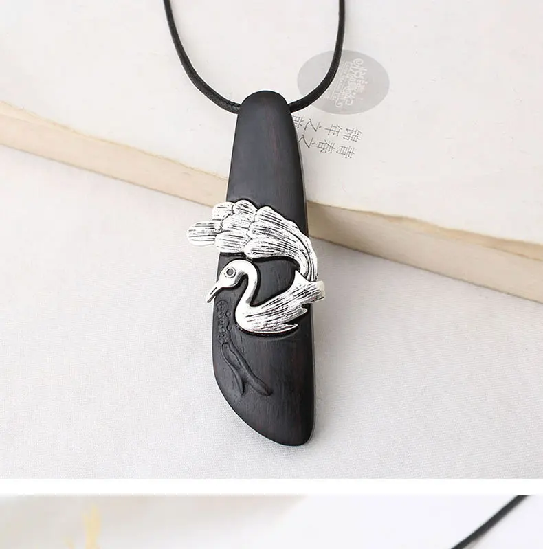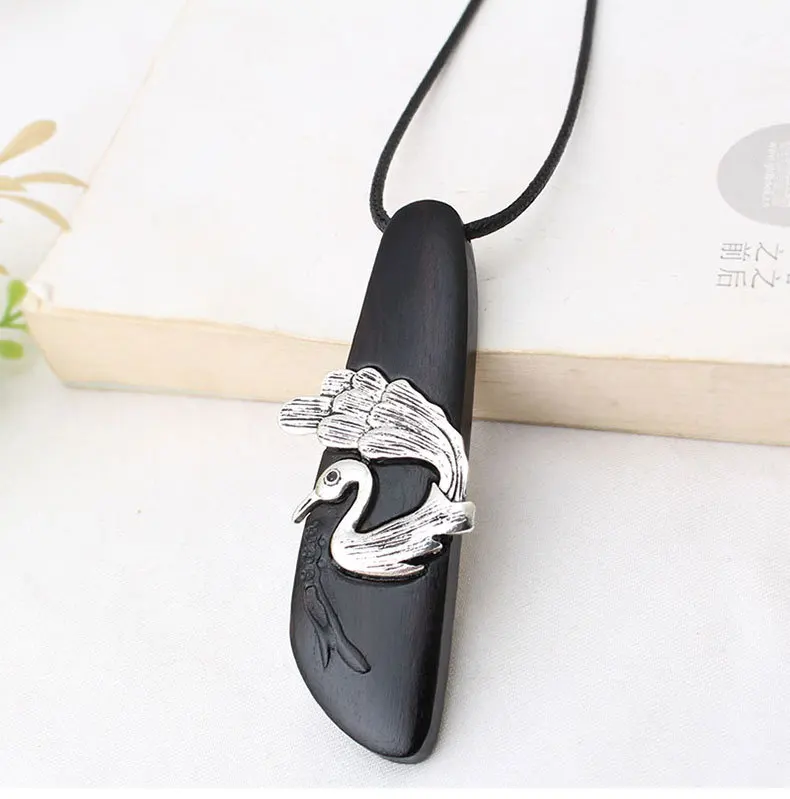 Original Unique Nepal Handcrafted Ebonwood Peacock Vintage Necklace Sweater Chain Ethnic Long Women Wooden Pendant Accessories