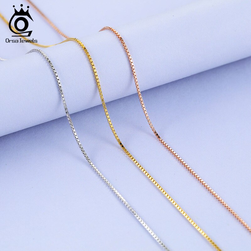 ORSA JEWELS Italian 925 Sterling Silver Box Chain Necklace Rose Gold/Gold Plated Silver Necklaces Neck Chains for Pendant SC07-G