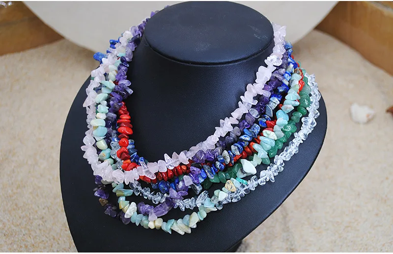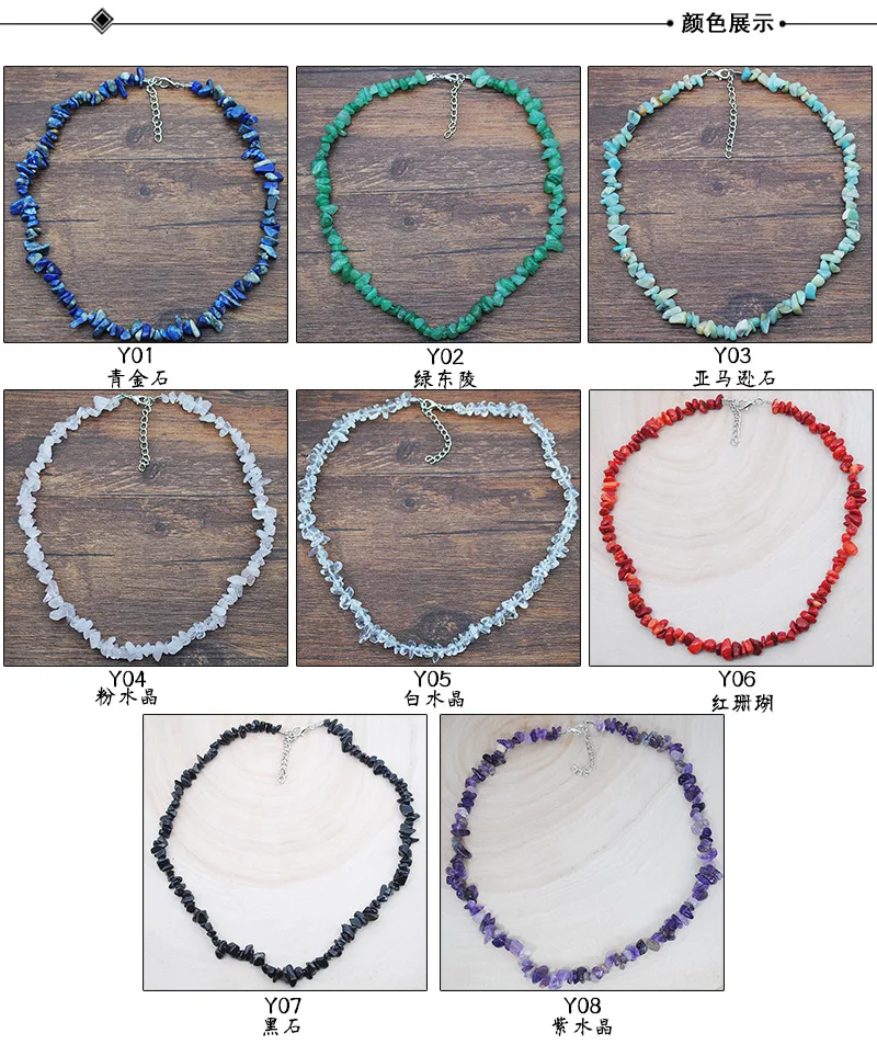 Outer banks natural crushed stone choker necklace rose purple crystal for women collar claviclenecklace bohemia summer
