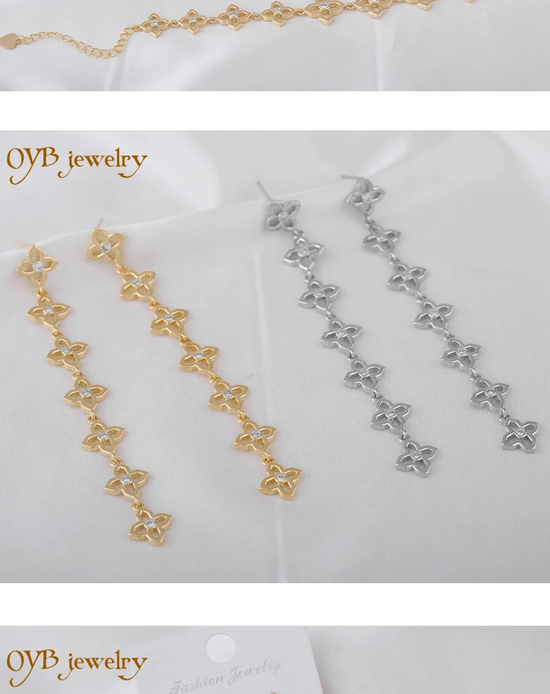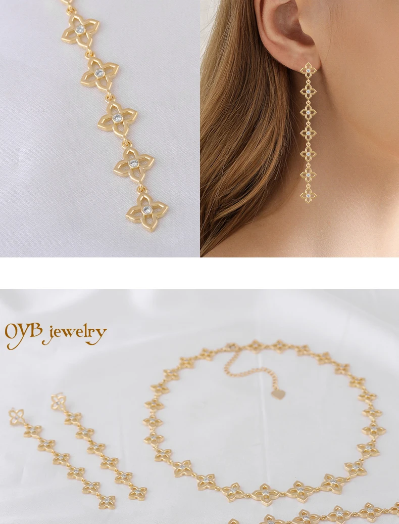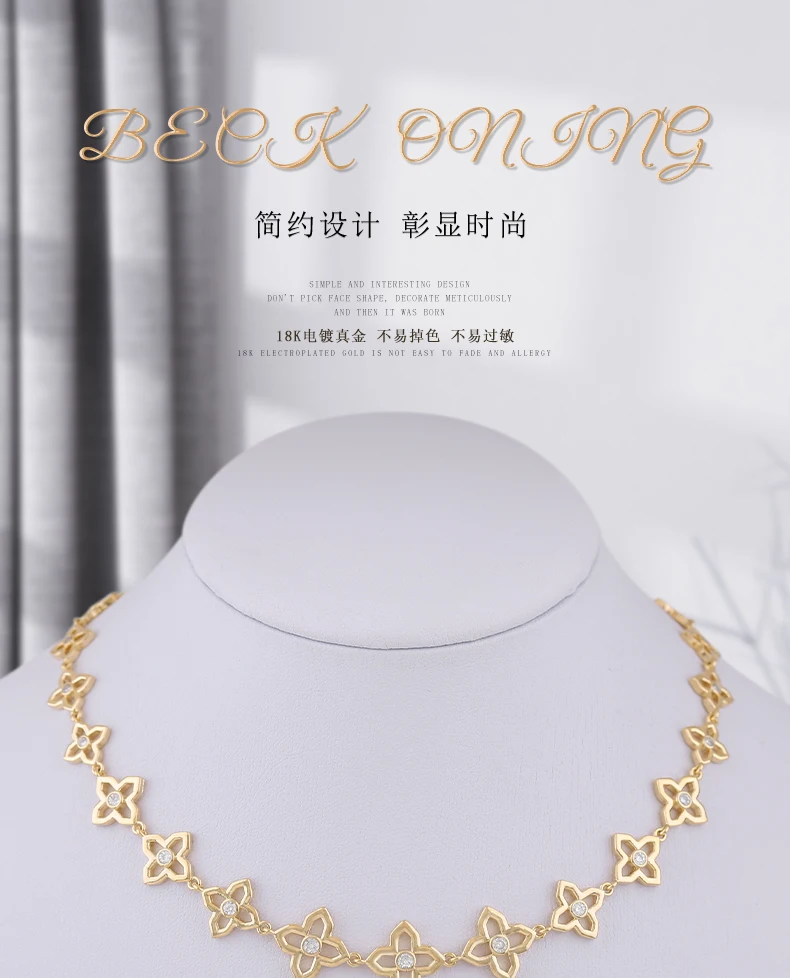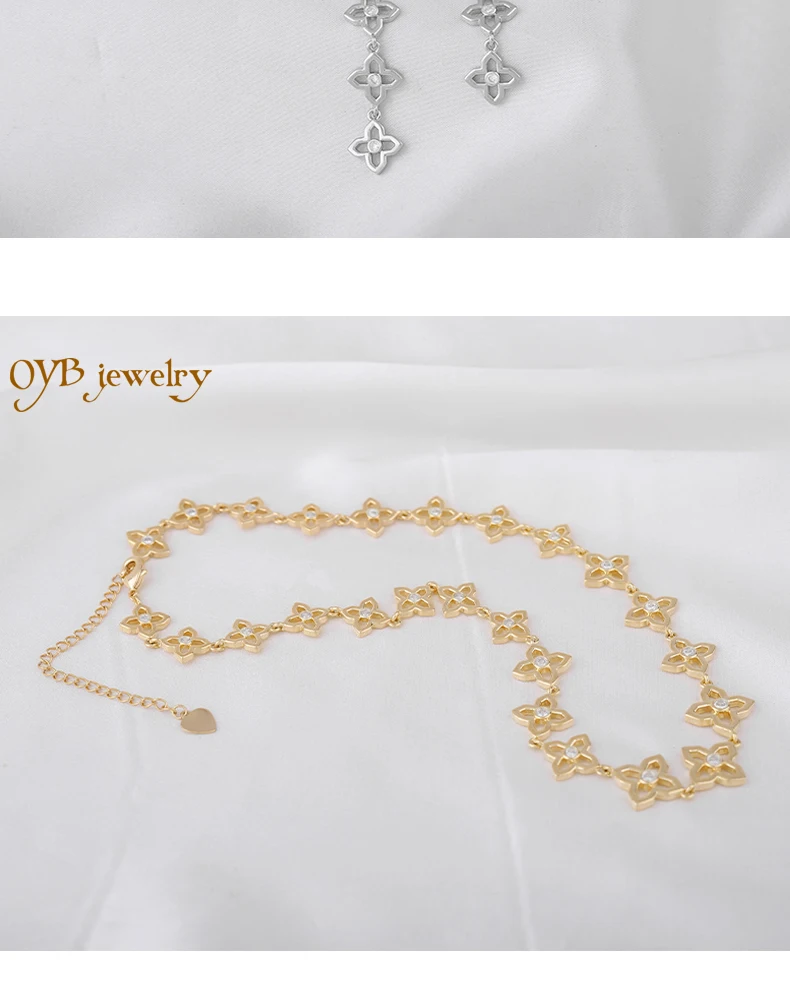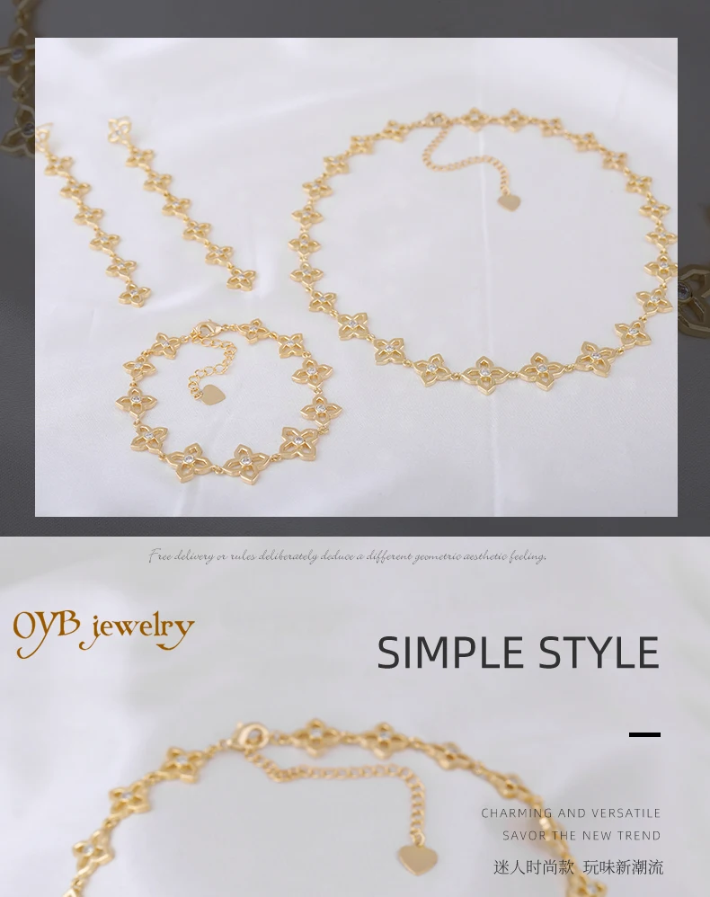 OYB Korean style four-leaf clover necklace three-piece set female golden collars ,clover short necklace popular jewelry