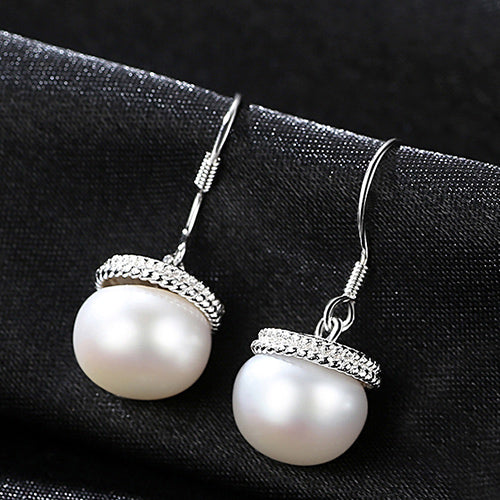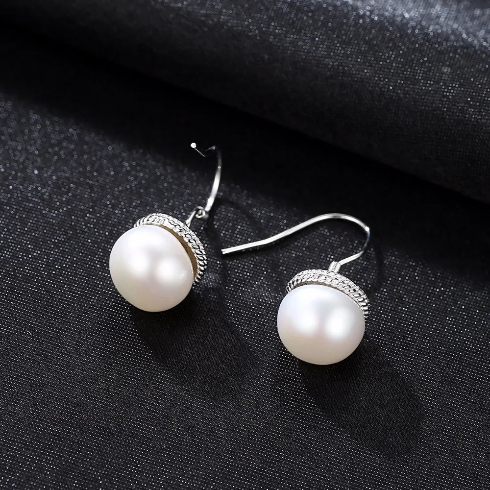 Brand 925 Sterling Silver Elegant Semicircle Natural White/Gr Pearl Drop Earrings For Women Fine Jewelry Brincos