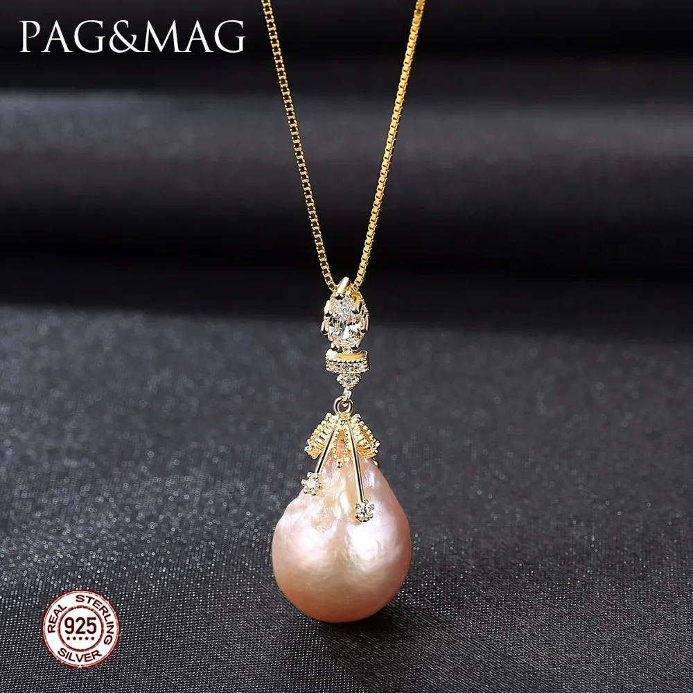 Brand Baroque Style Big Multicolor Natural Pearl Pendant 925 Sterling Silver Pendant Necklace For Women Gift