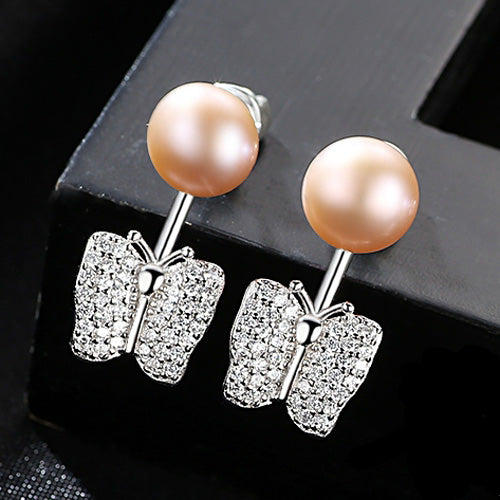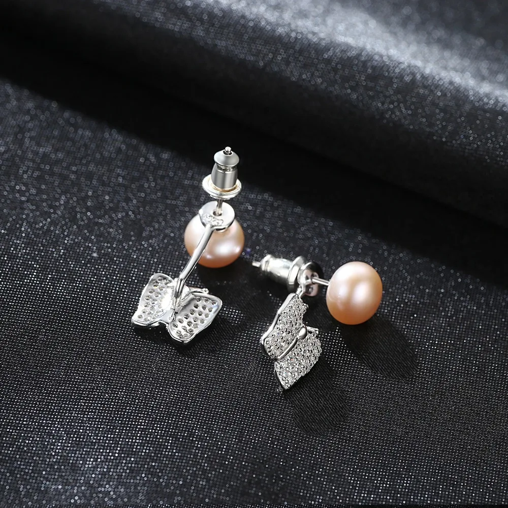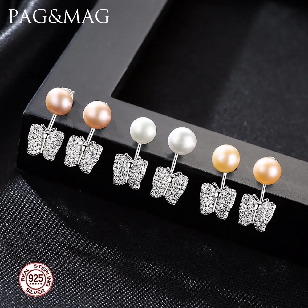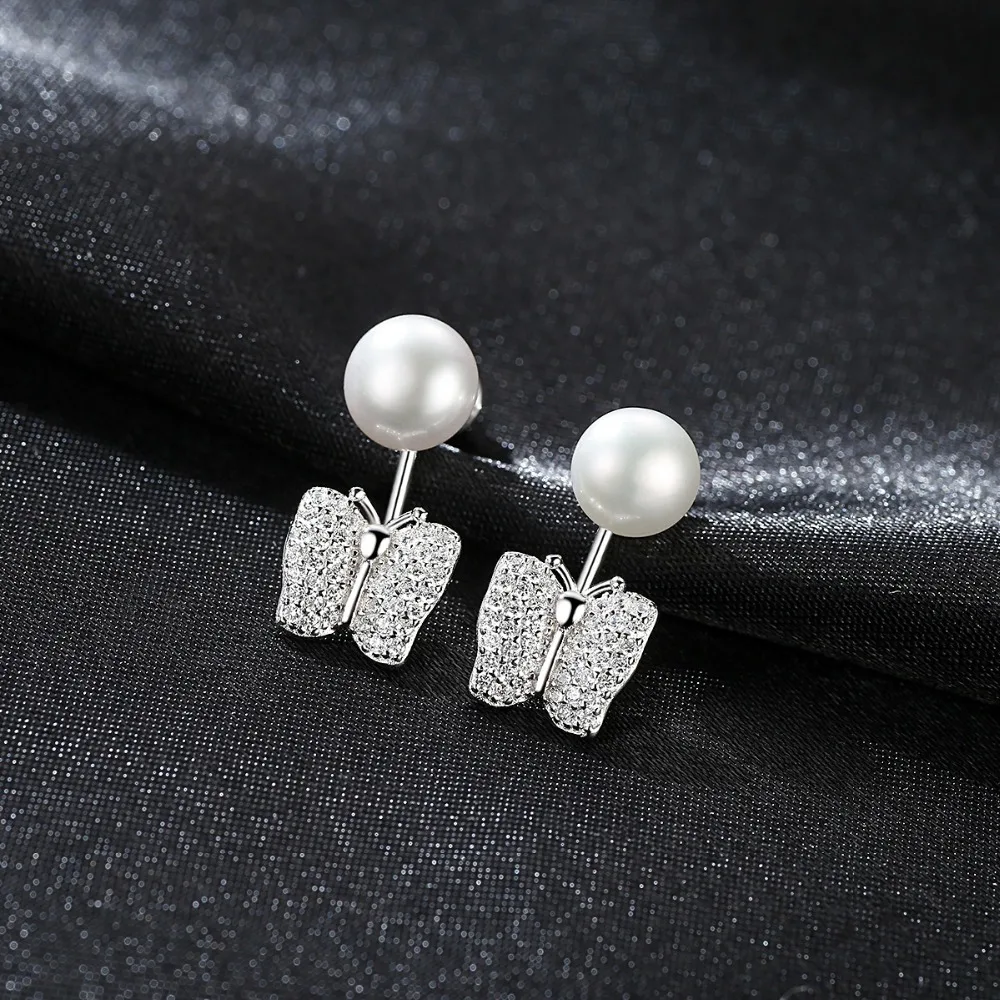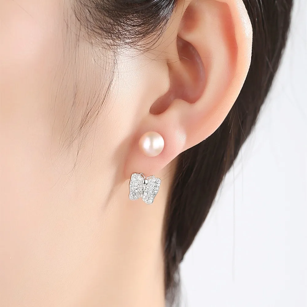 Brand Butterfly 925 Sterling Silver Stud Earrings with Natural Pearl Fine Jewelry Women Earring Silver Factory Wholesale