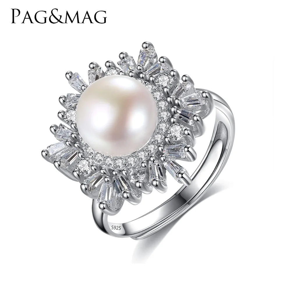 Brand Charms Pearl Rings With CZ Fine Jewellry For Women 2020 New Resizable Real 925 Sterling Silver Jewelry Gift Box