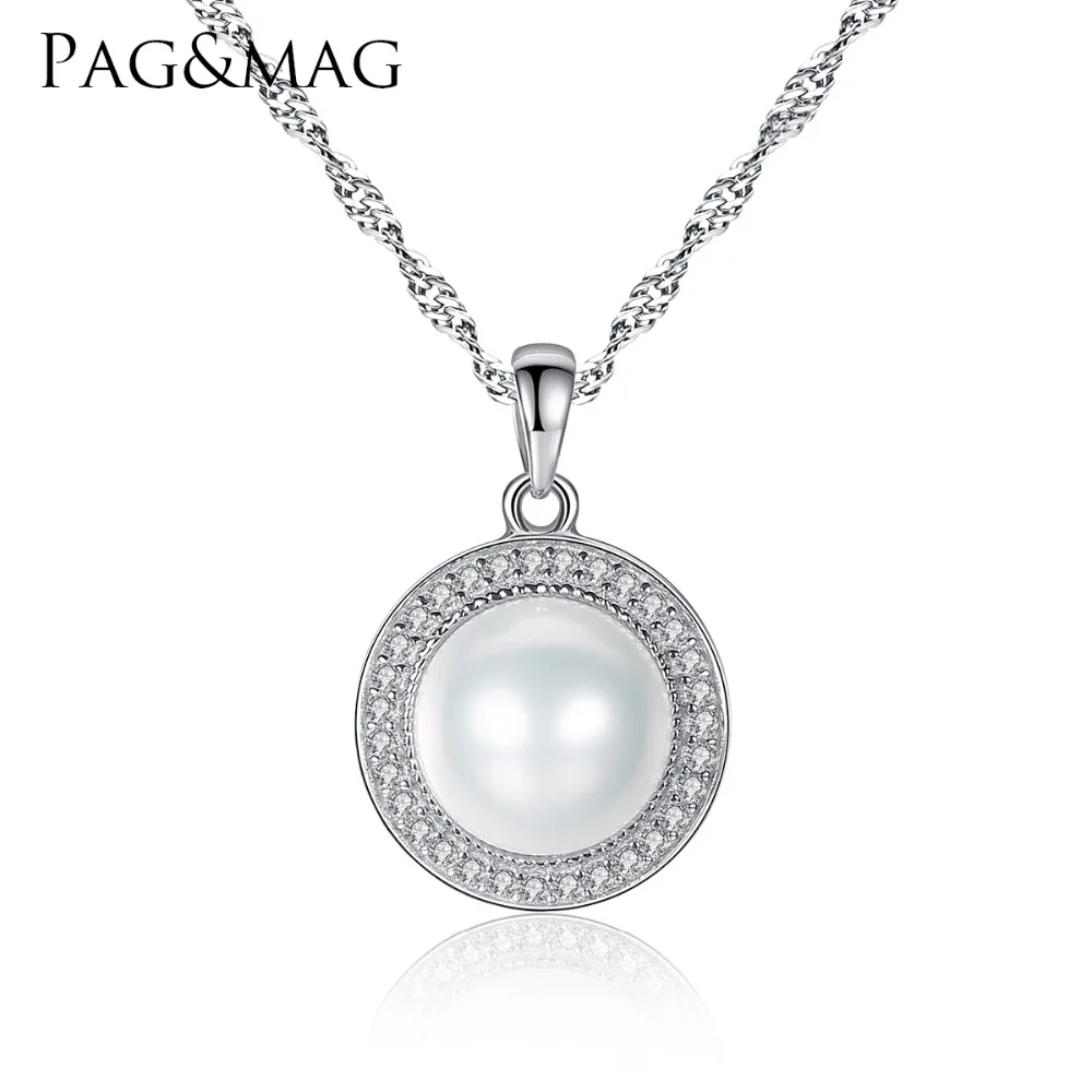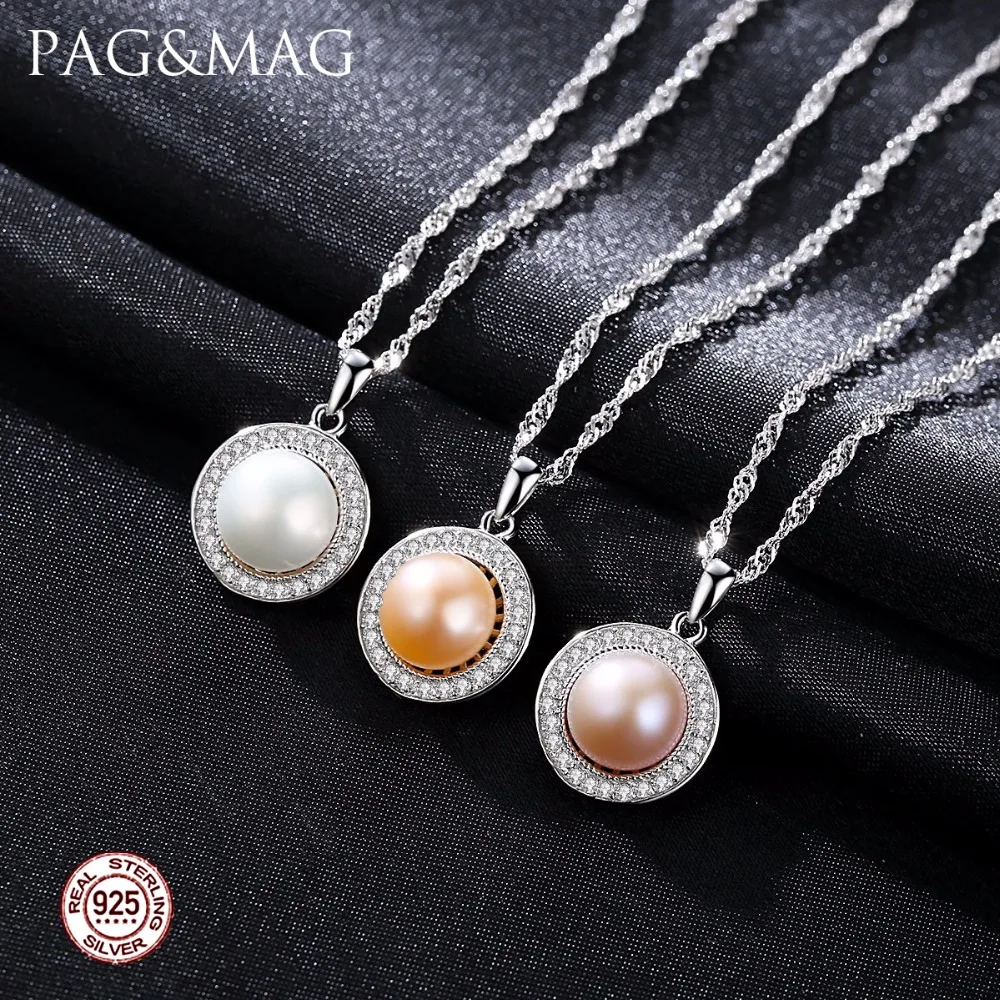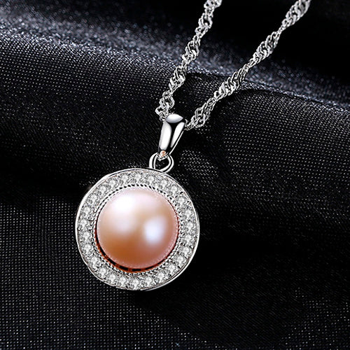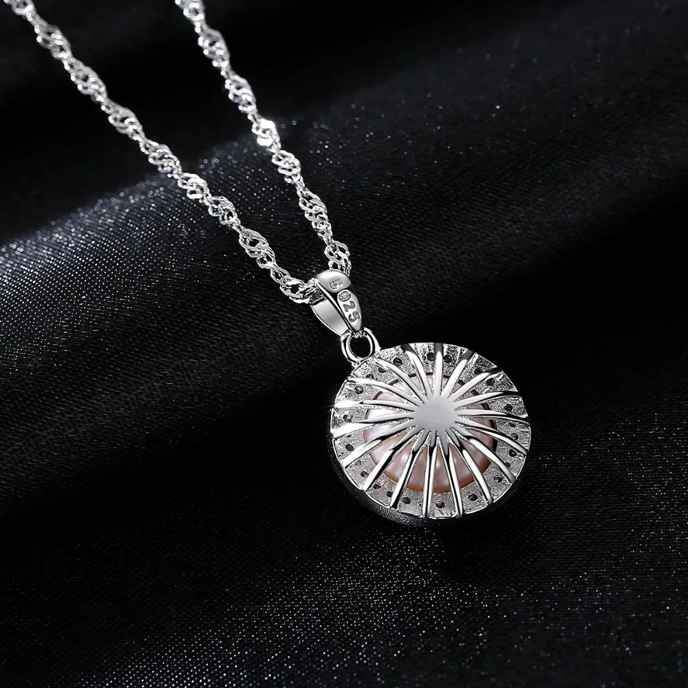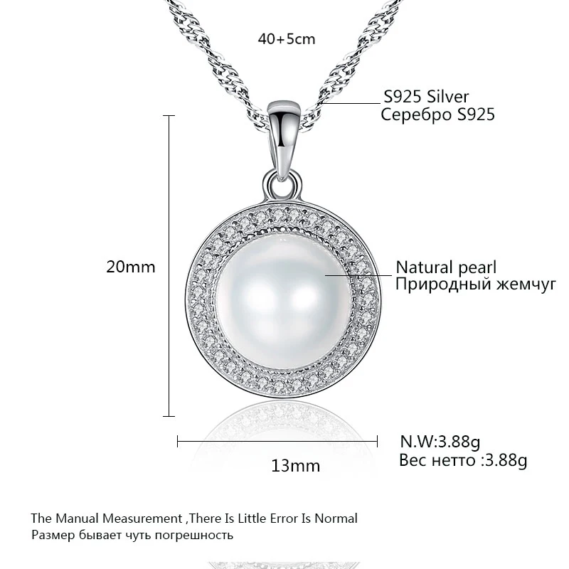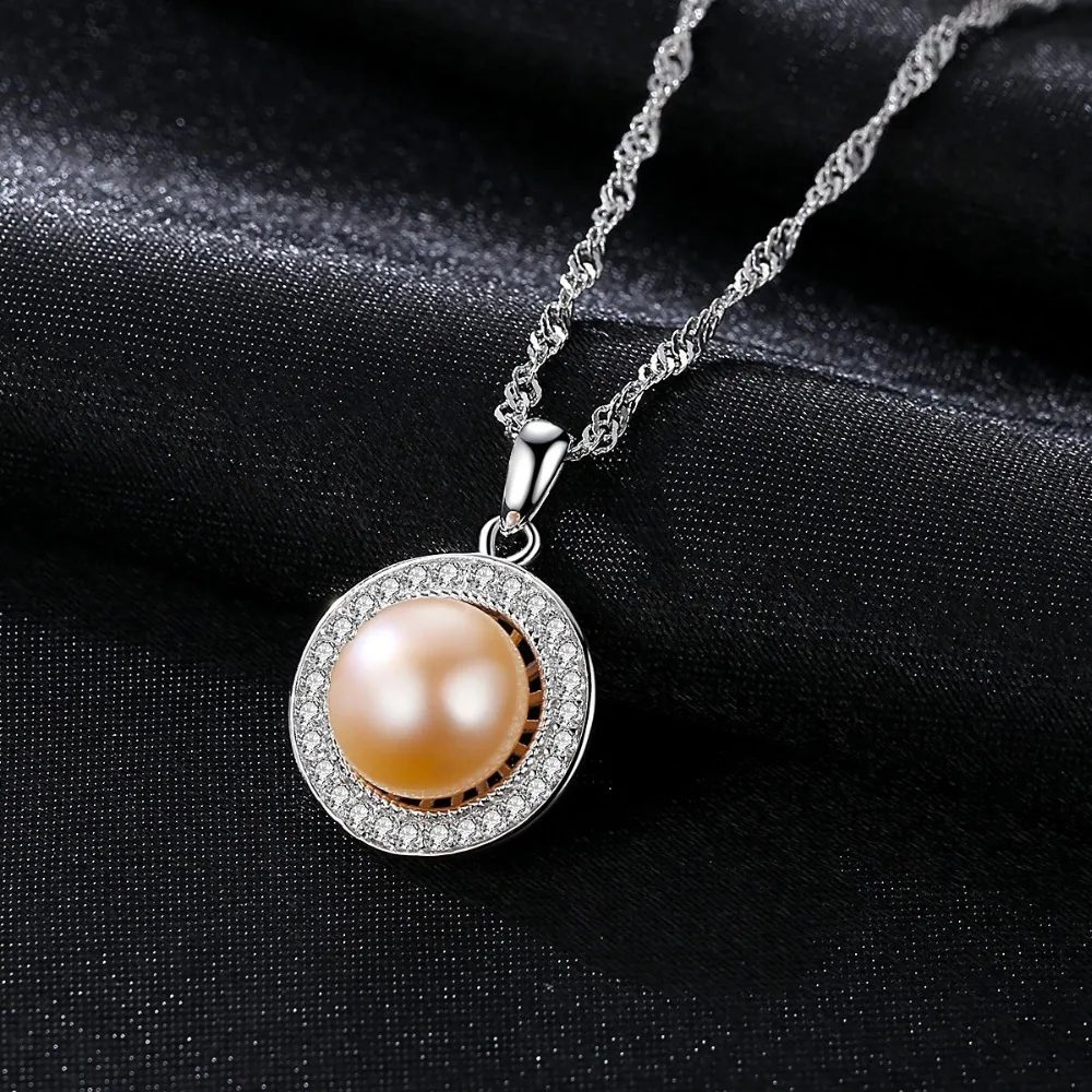 Classic Round 925 Sterling Silver Pendant Necklace with 9-9.5mm Pearls Natural Pearl Fine Jewelry Hot001