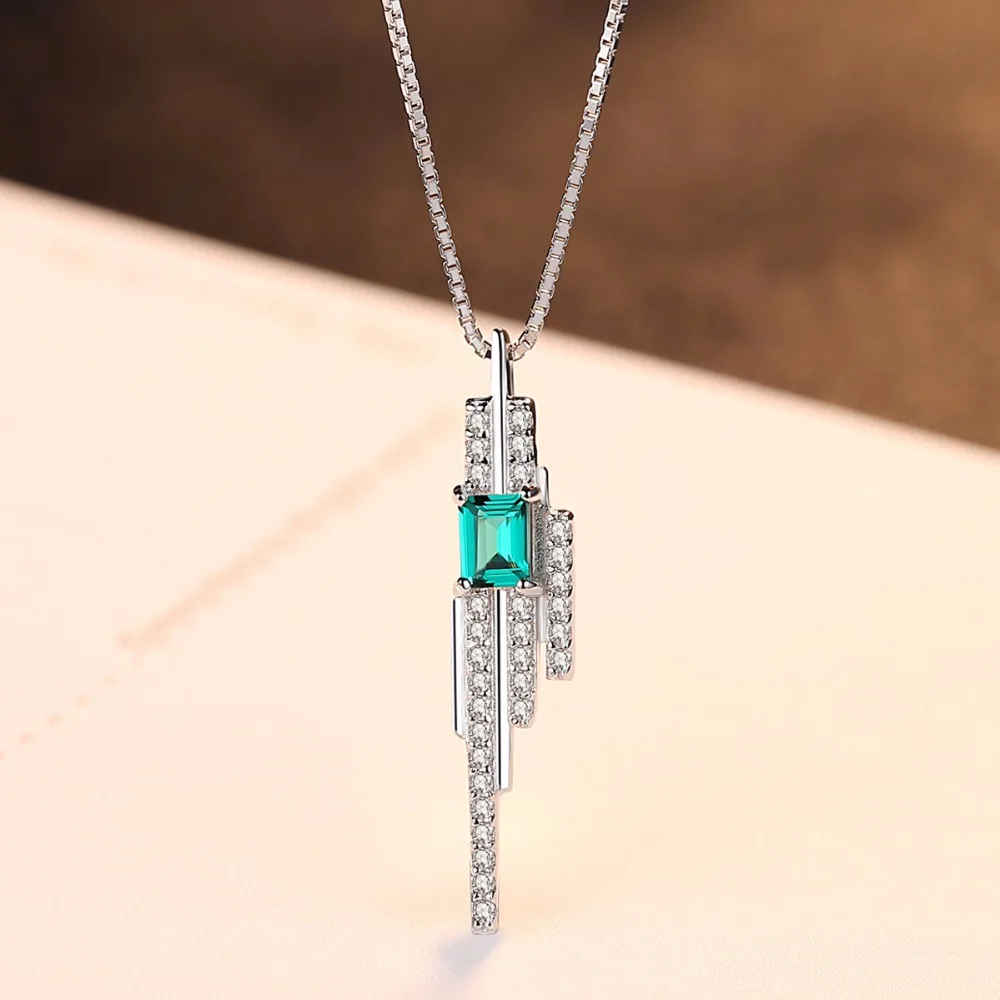 Created Green Topaz Pendant Necklace Iregular Geometric 925 Sterling Silver Charm for Women Fashion Jewelry New Arrival