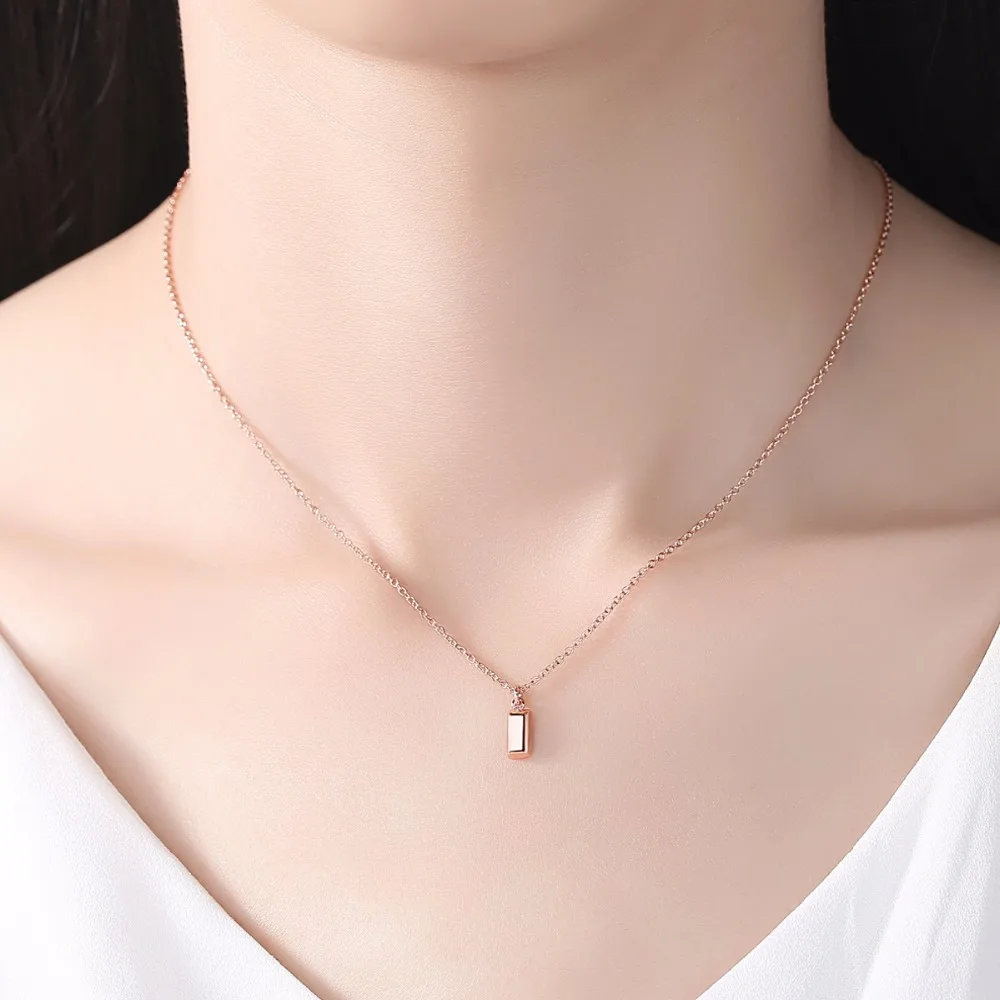 New Fashion Genuine Sterling Silver 925 Pedant Necklace Minimalist Simple Squared For Women&Men Delicate Trendy Jewelry