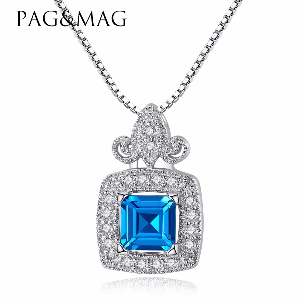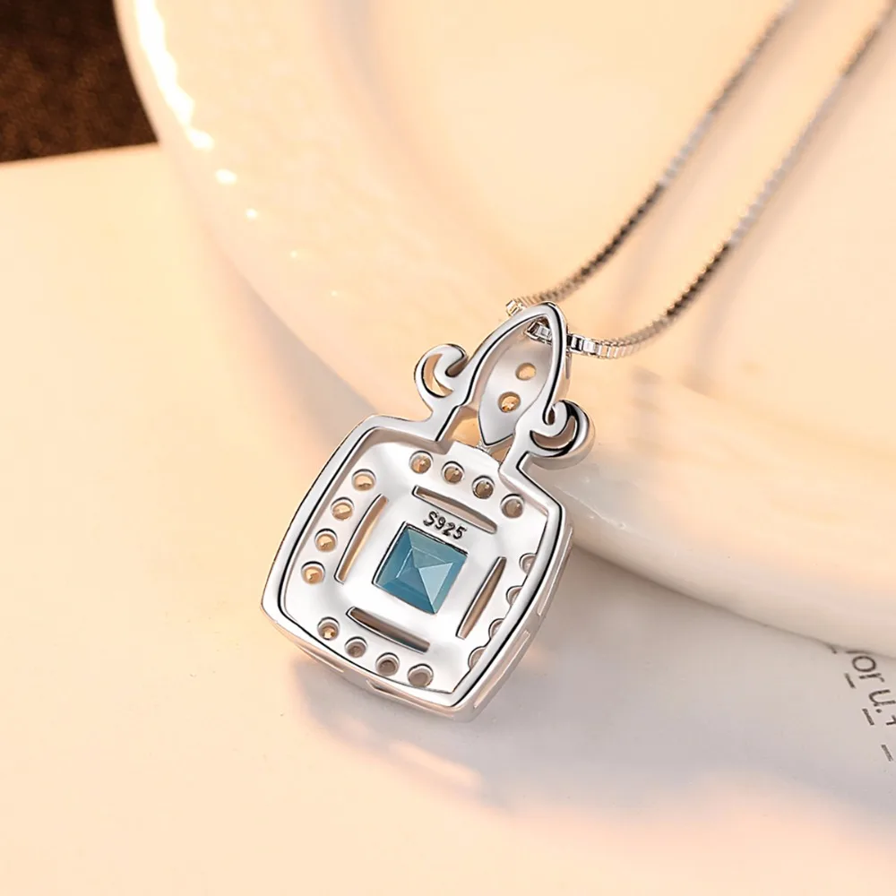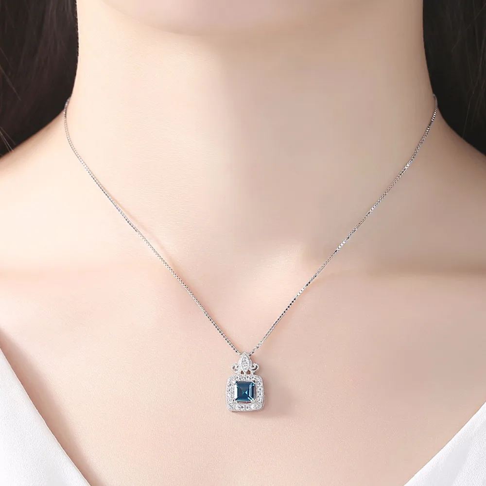 Square Bule Topaz Created 925 Sterling Silver Pendant Necklace Fashion Necklace for Women Egagement Fine Jewelry