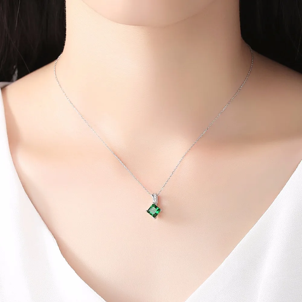 Vintage 925 Sterling Silver Chain Necklace Green Crystal CZ Women Charm Pendant Necklace Silver Jewelry Wholesale Gift
