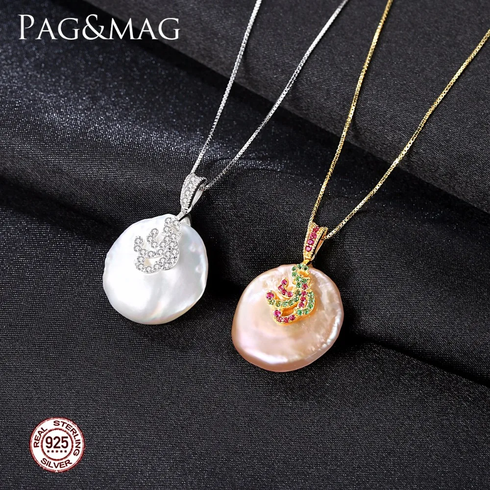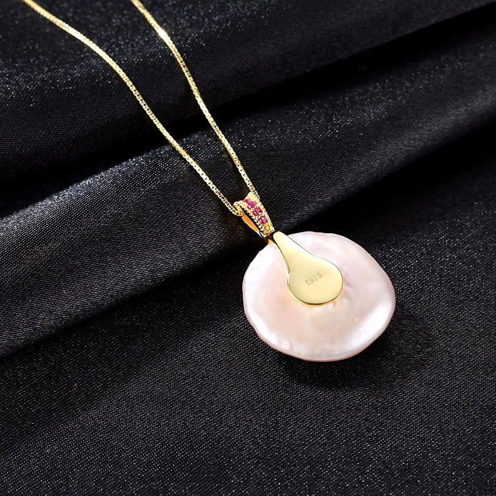 White/Pink Color Large Size Tissue Nucleated Flameball Shape Natural baroque Pearl Pendant 925 Sterling Silver Necklace