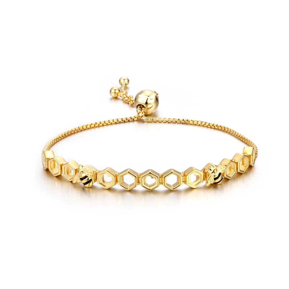 PDB2 Honey Bee 925 Sterling Silver Bracelets Colorful Heart Luxury Love Honey Comb Golden Bee Jewelry For Men Women Bracelet