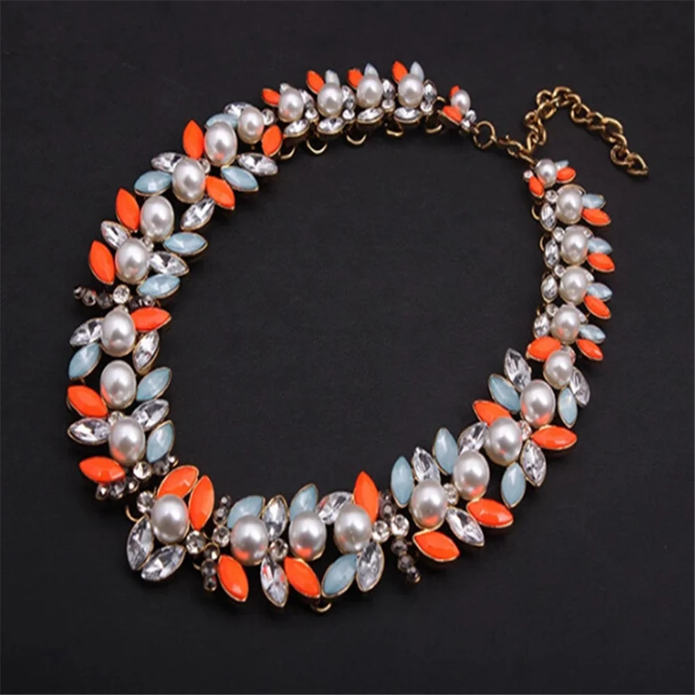 Pearls Chunky Choker Necklace Ethnic Statement Maxi Crystal Collar Jewelry Women Party Indian Bridal Wedding Brincos