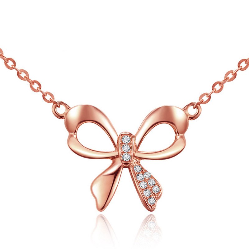 Pendant Necklace Silver 925 Bowknot Shape with Cz Rose Gold Link Chains For Women HN020