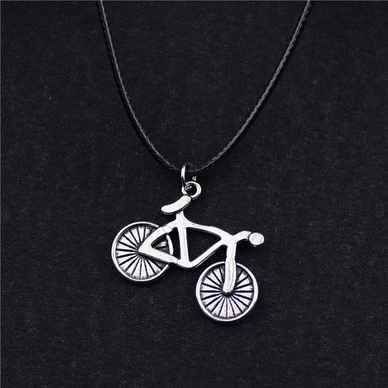 Personality Antique Silver Color Bicycle Pendant Bike Charm Leather Necklace for Women Men Cycling Jewelry Gifts Accessories
