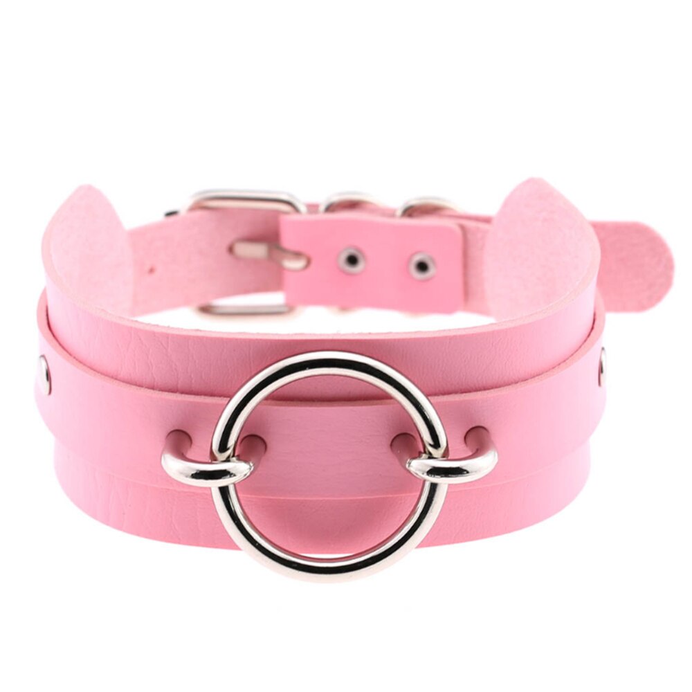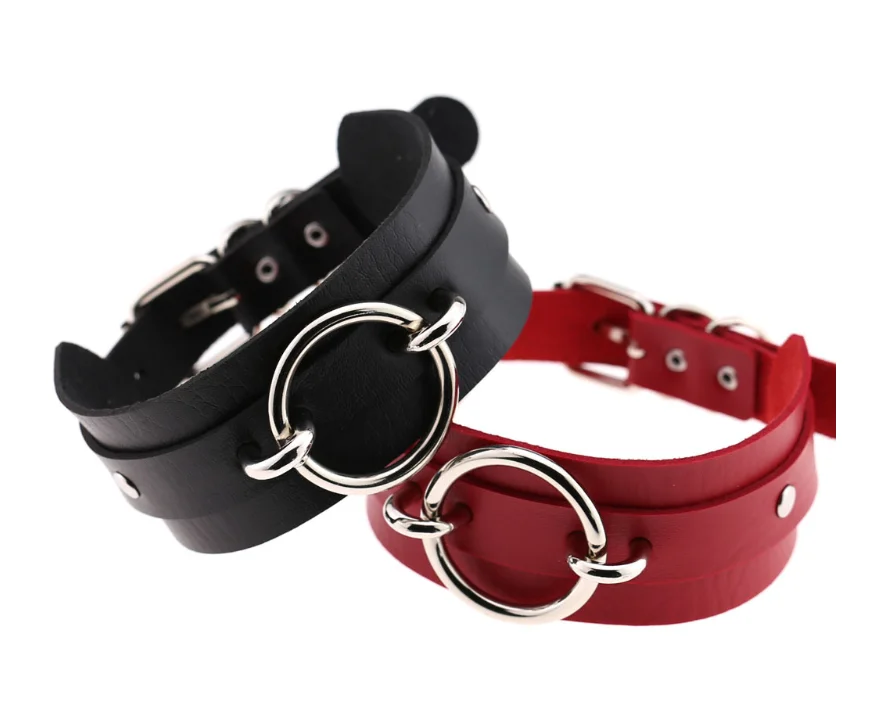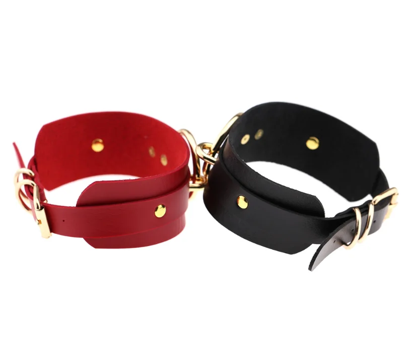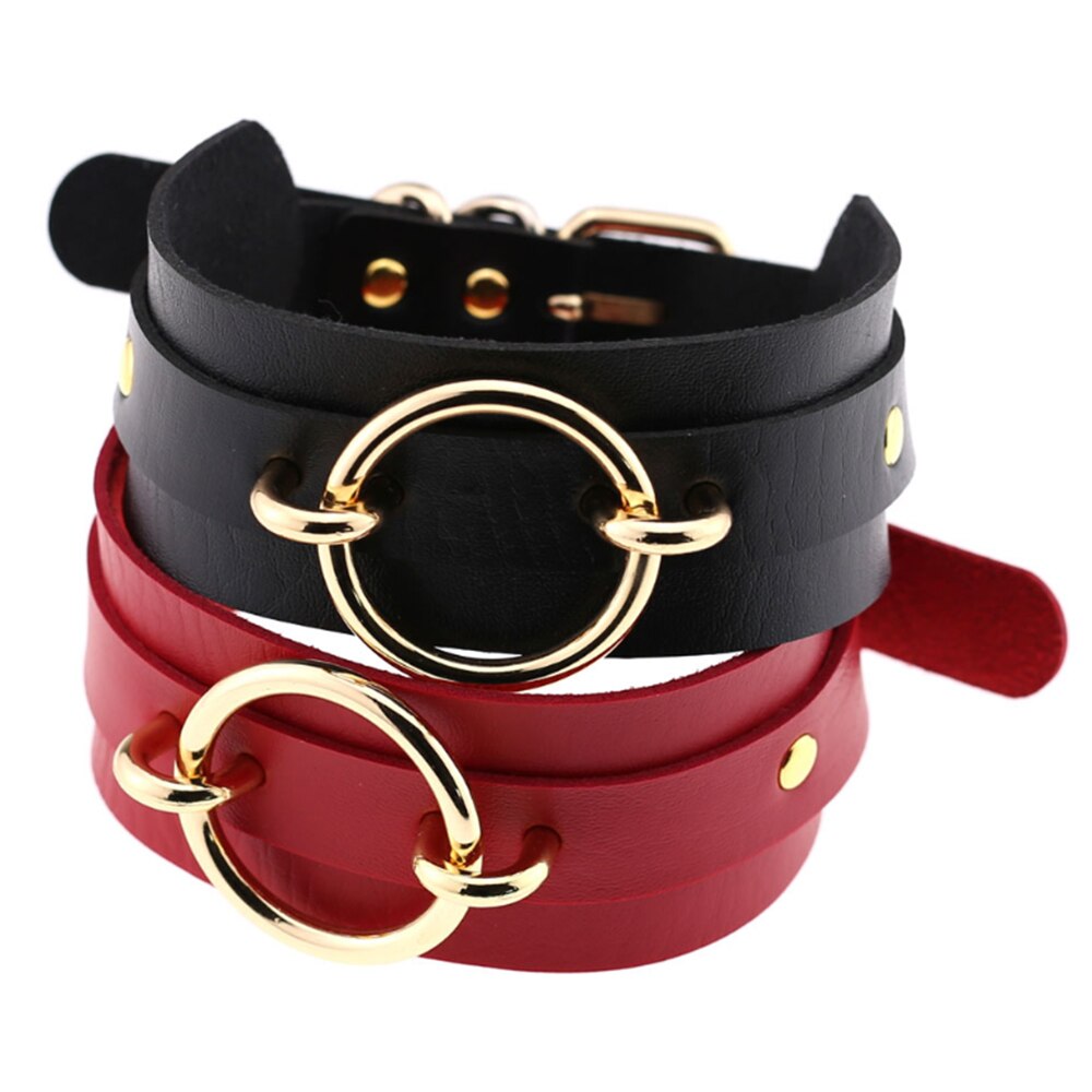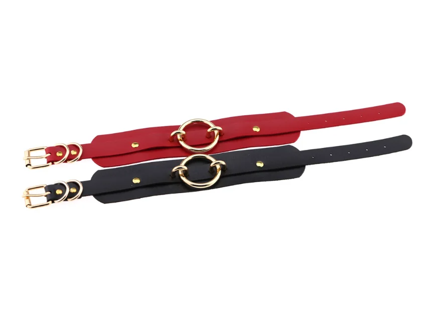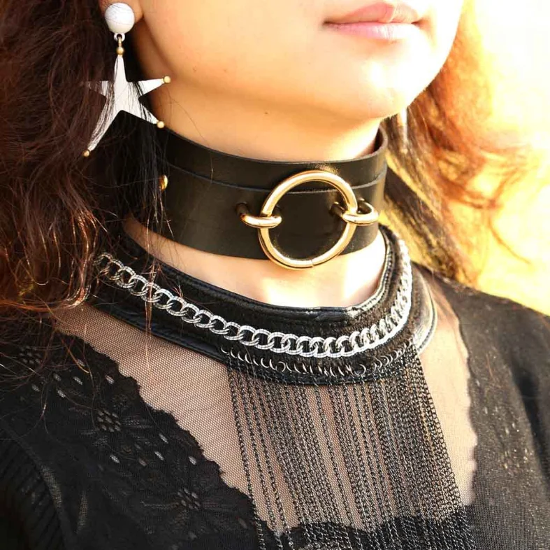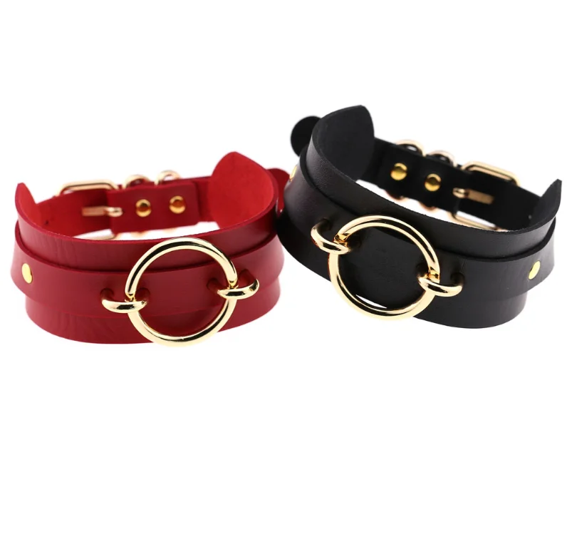 Personality BDSM punk brother character sense men and women round double leather collar neck strap neck set necklace
