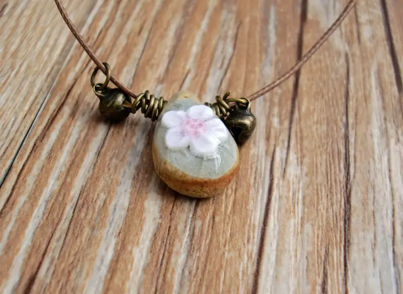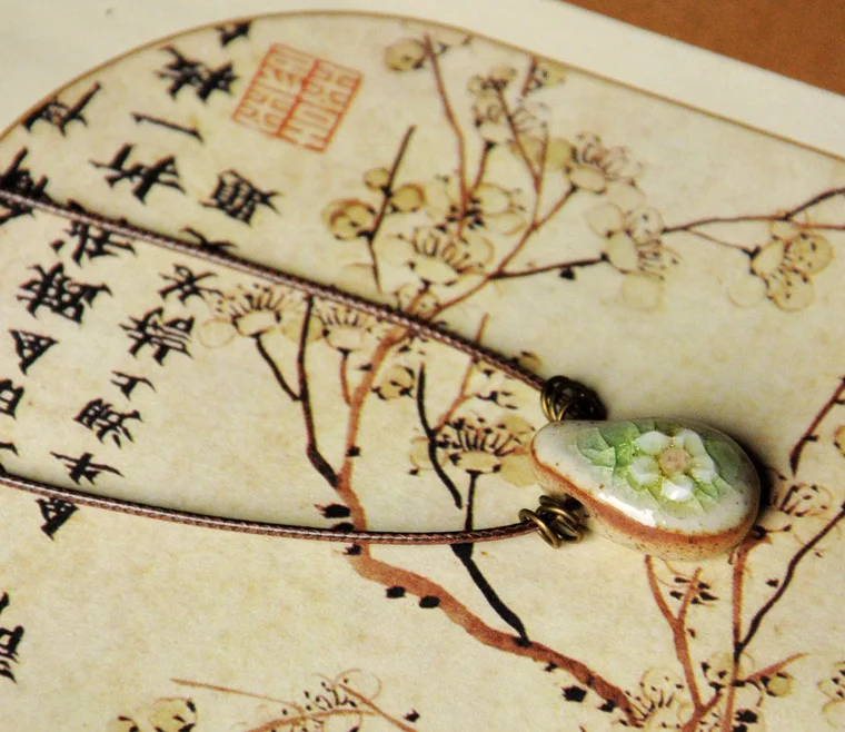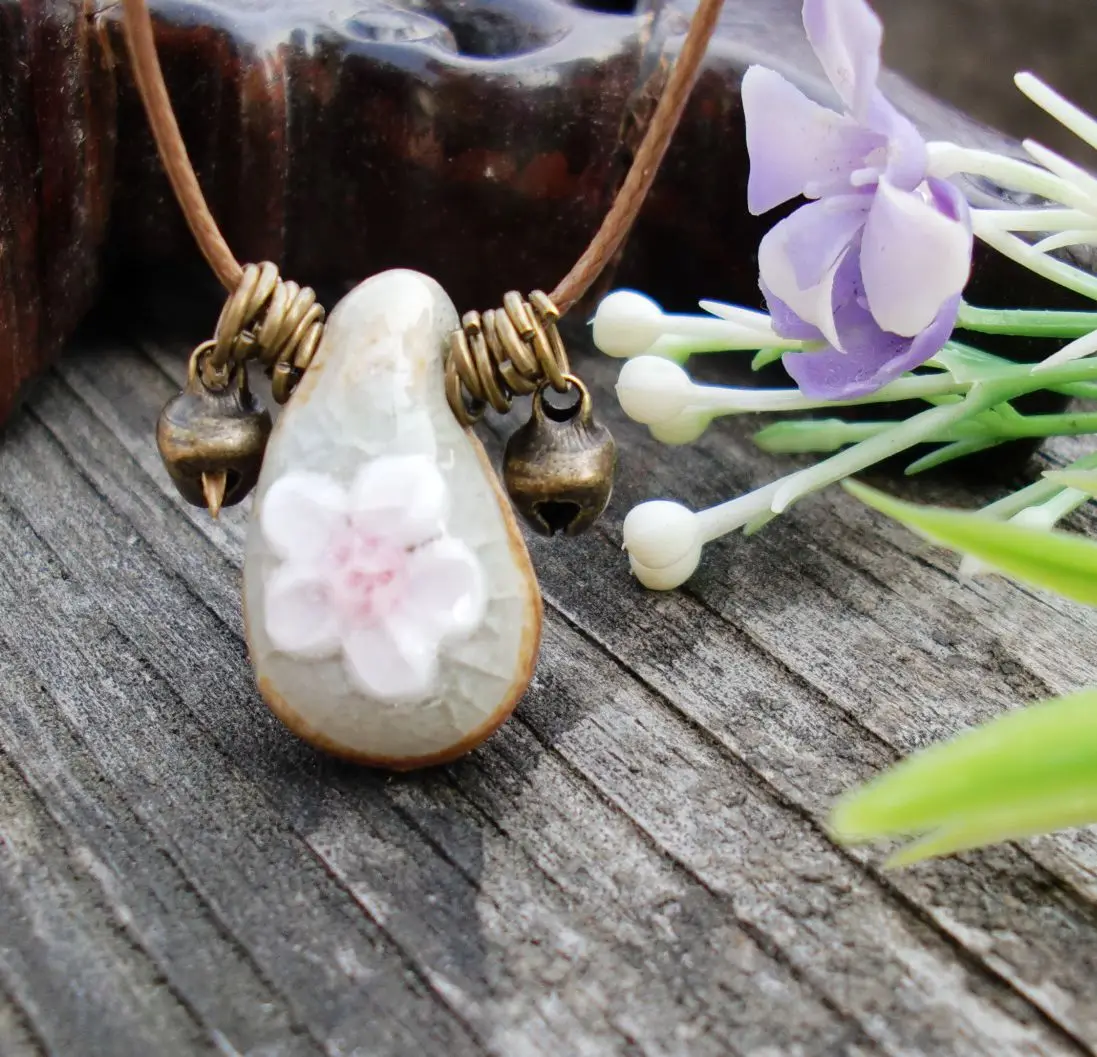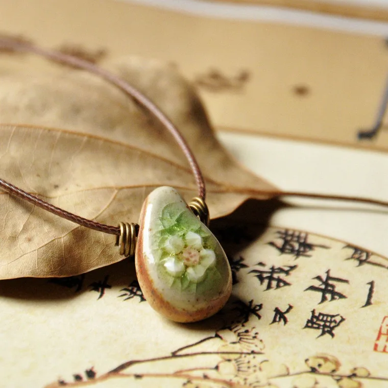 Personality Hand-kneaded Ceramic Flower Pendant Necklace Simple Vintage Ethnic Style Jewelry Girl Women's Accessories