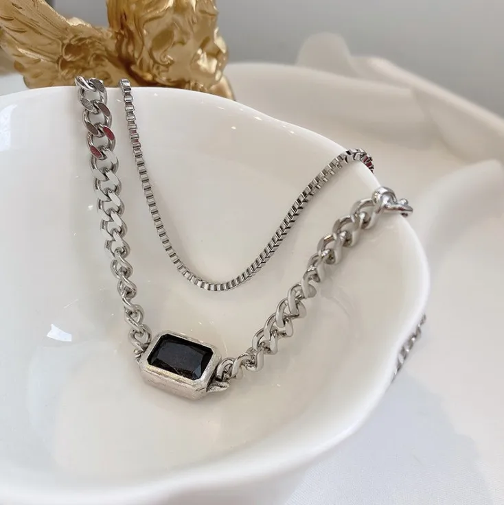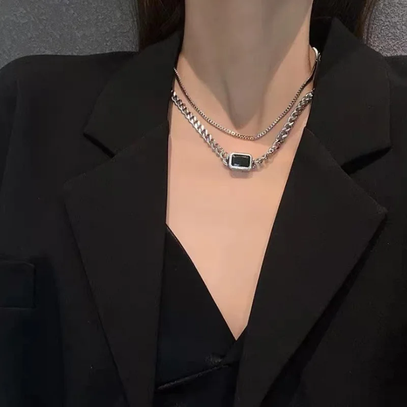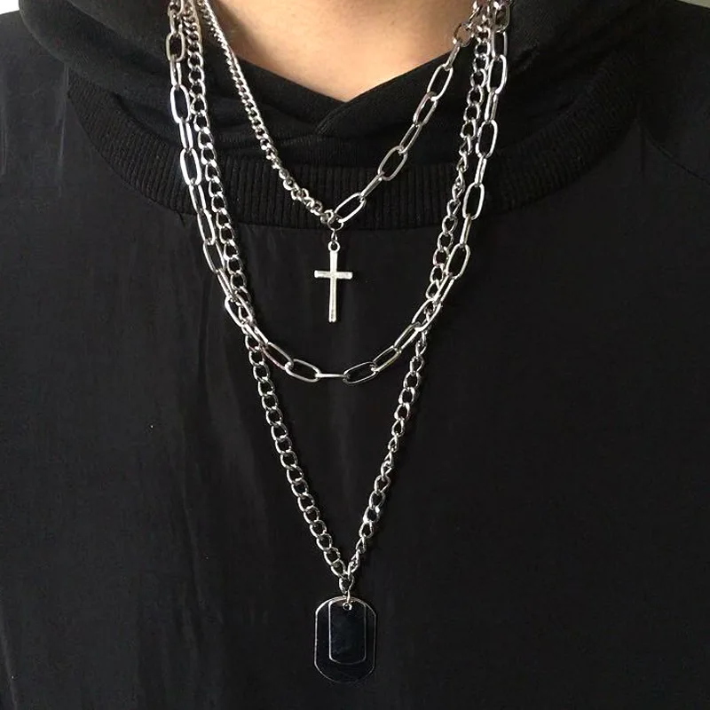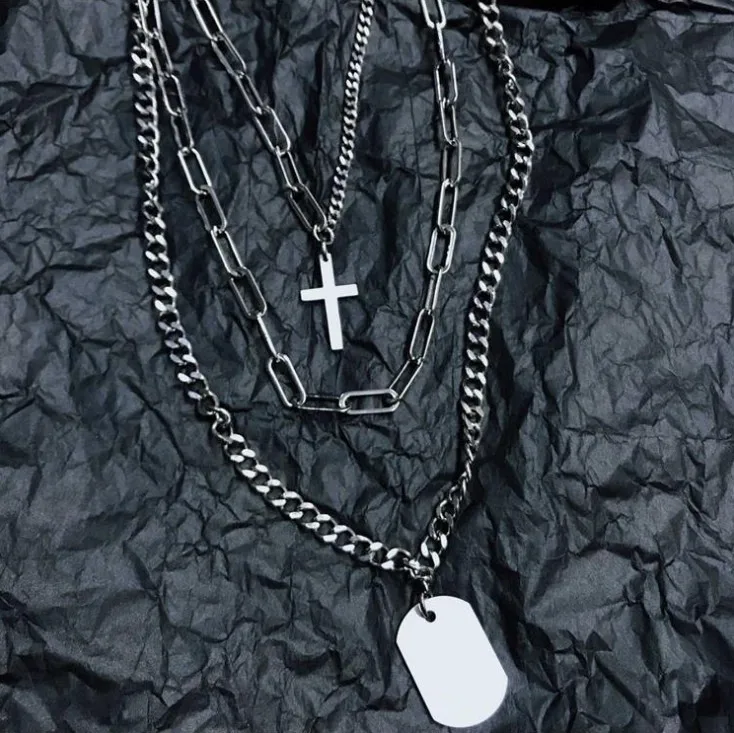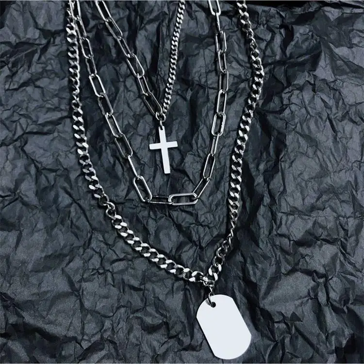 Personality Hip Hop Multilayer Necklace Metal Cross Pendant Silver Color Chain Necklace for Women Men Unisex Jewelry