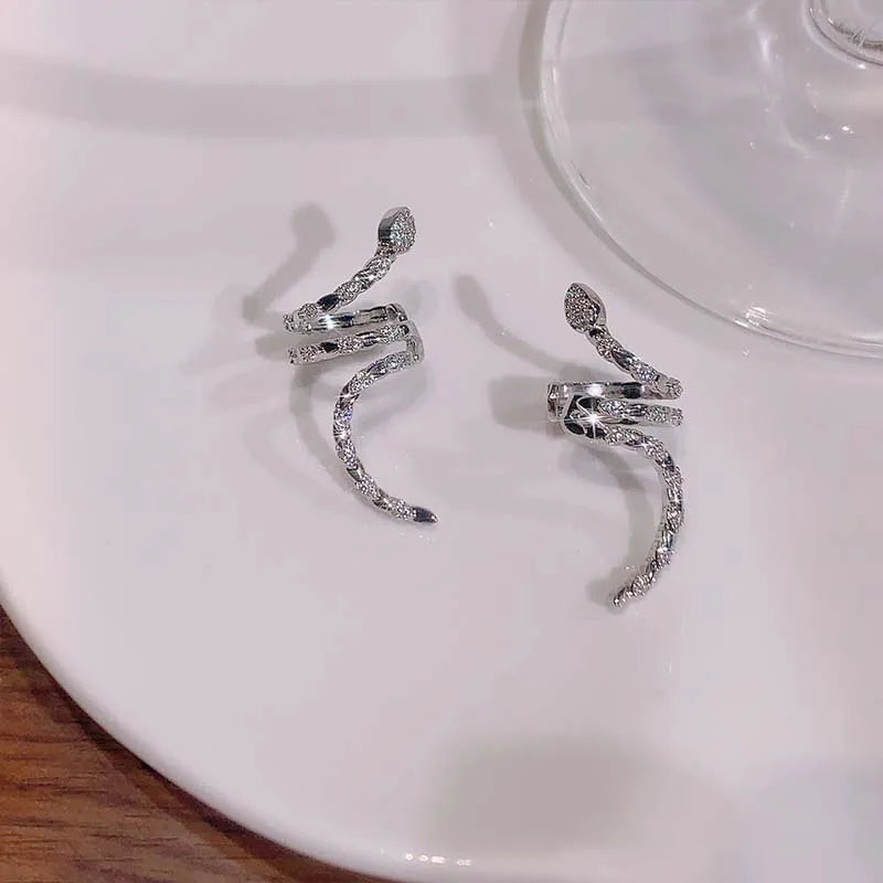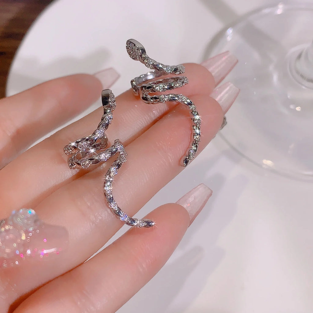 Personality Rhinestone Snake Shaped Clip Earrings for Women Sparkling Zircon Animal Without Piercing Ear Cuff Party Jewelry Gift