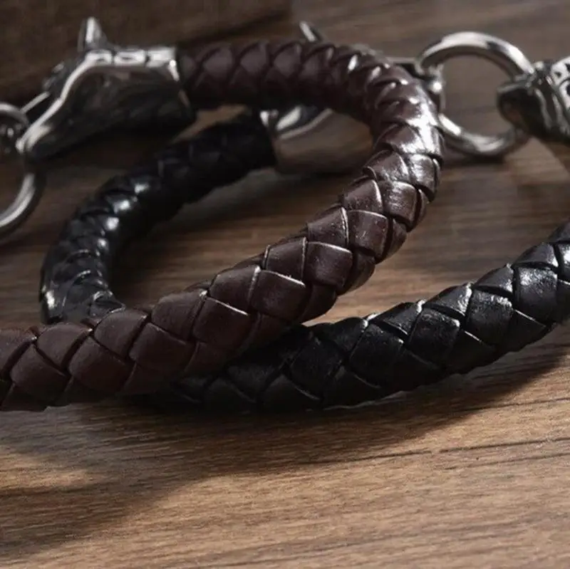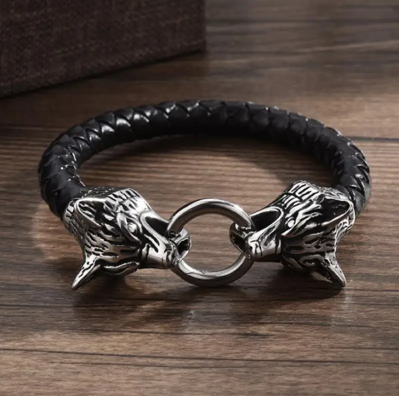Personality Silver-Plated Wolf Head Bite Ring Bracelet Woven Bracelet Banquet Trend Jewelry for Men