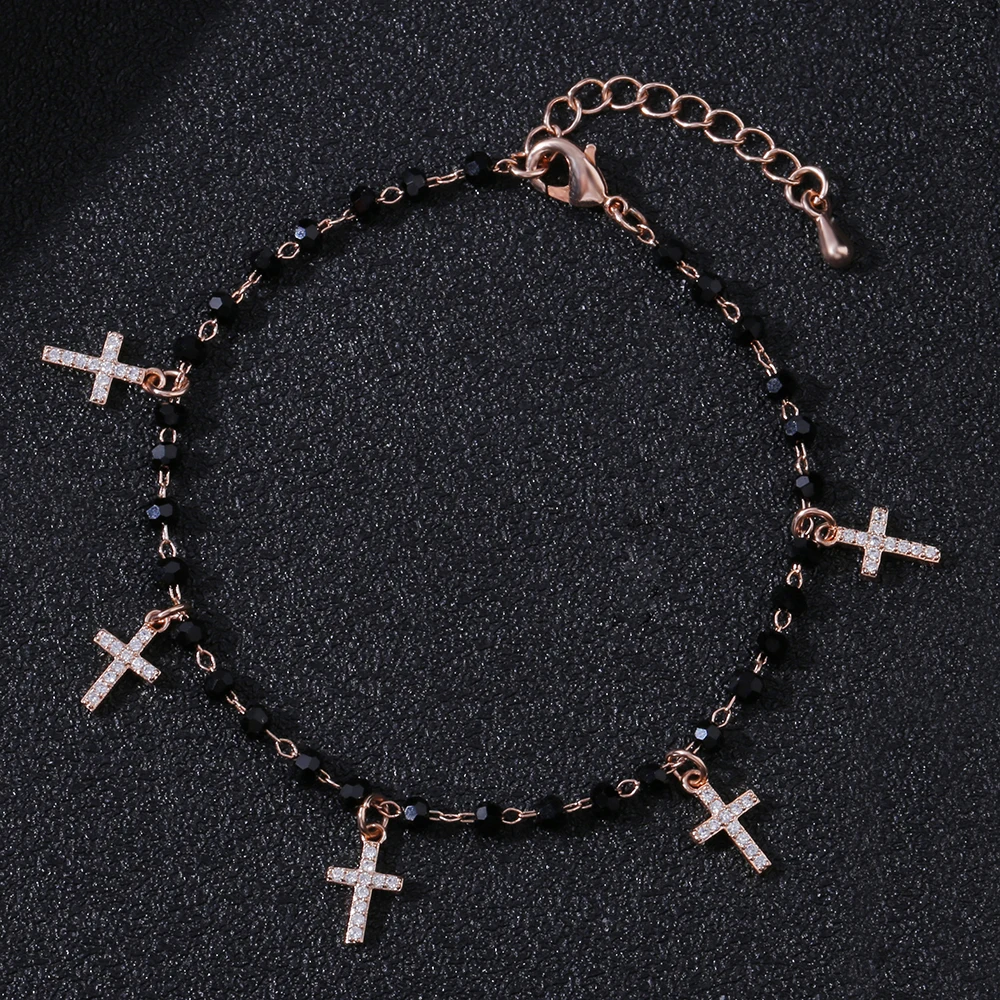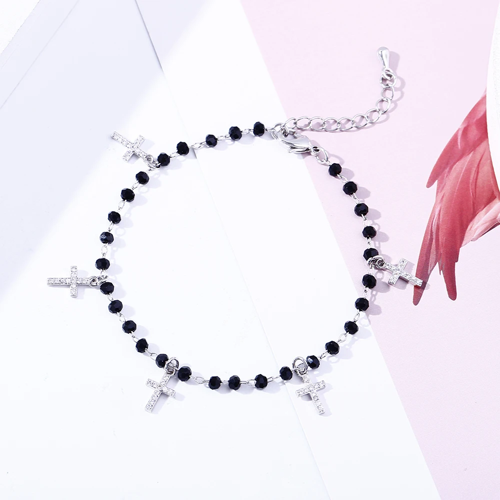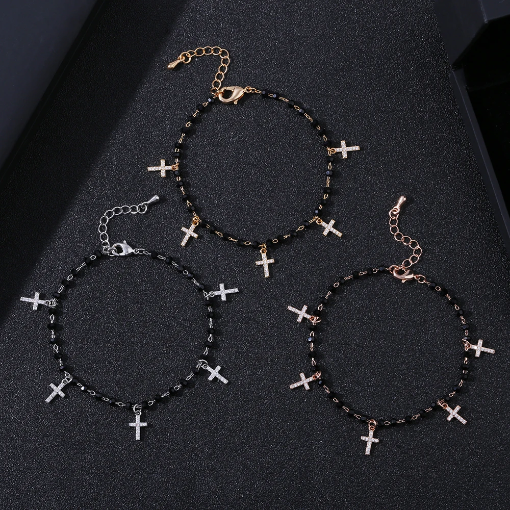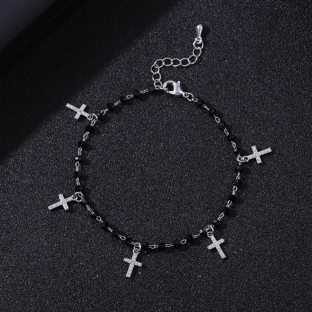 Personality Zirconia Crystal Cross Charms Bracelet Adjustable Silvery Multi Pendant Tassel Bracelets Jewelry