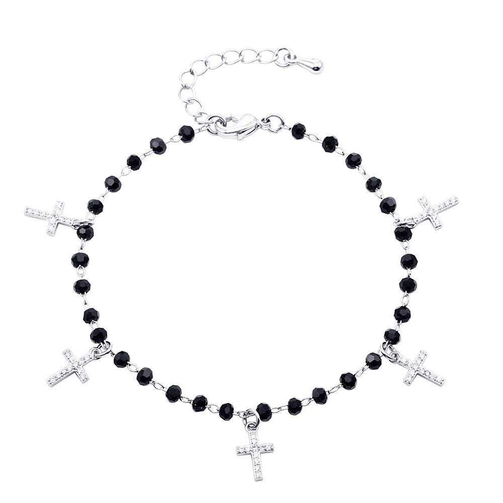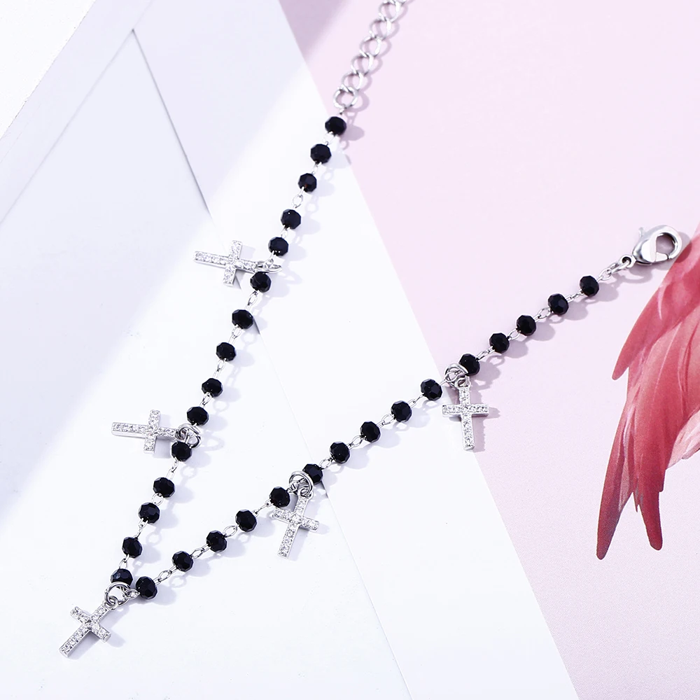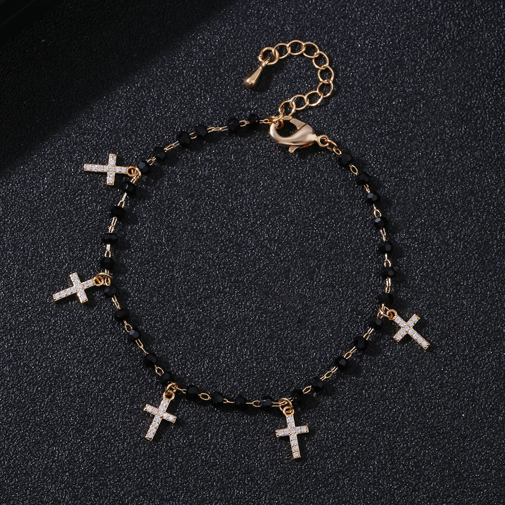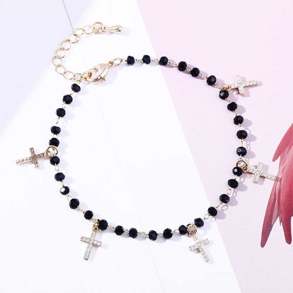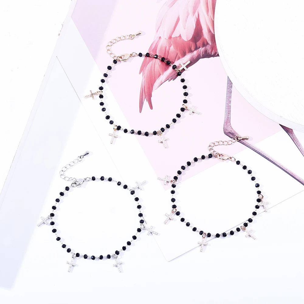 Personality Zirconia Crystal Cross Charms Bracelet Adjustable Silvery Multi Pendant Tassel Bracelets Jewelry