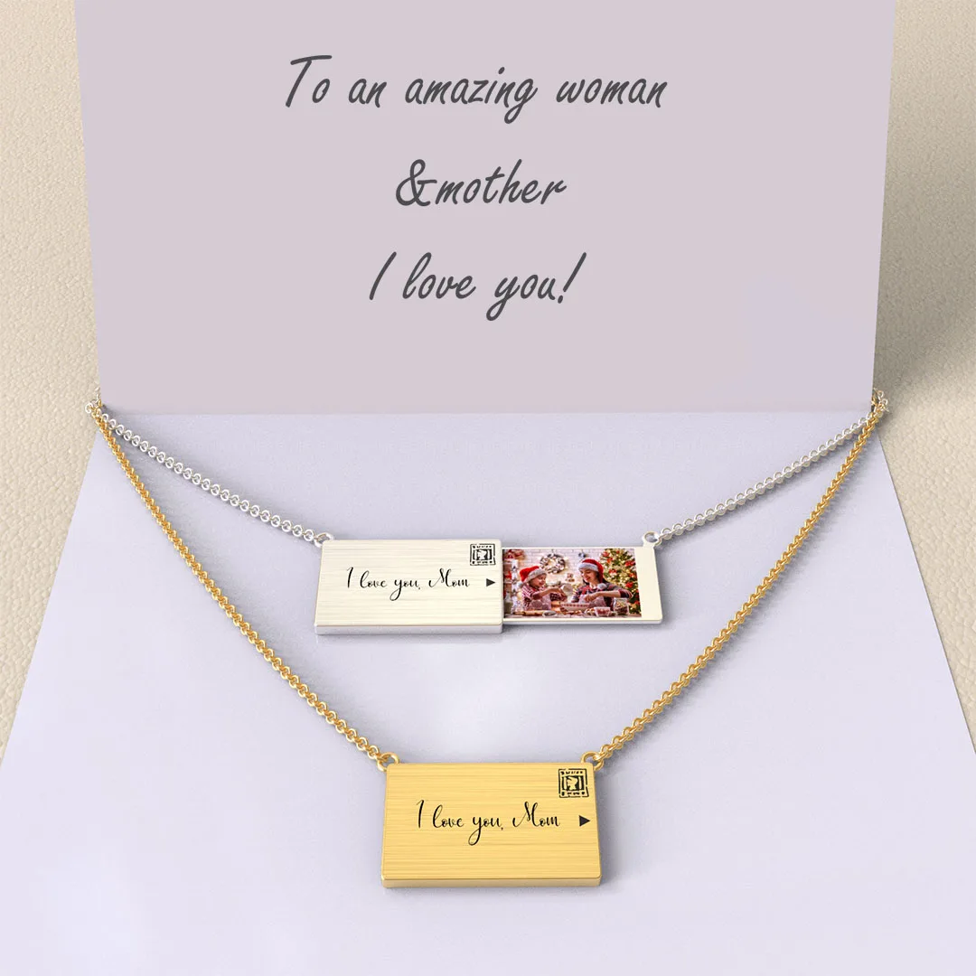 Personalize Custom Word And Photo Romantic Lover Letter Pendants Charm Envelope Necklace For Women Jewelry