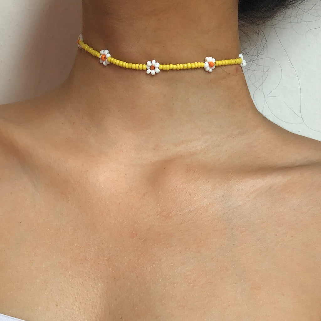 Personalized jewelry, creative rice bead woven Daisy necklace, necklace chains necklace